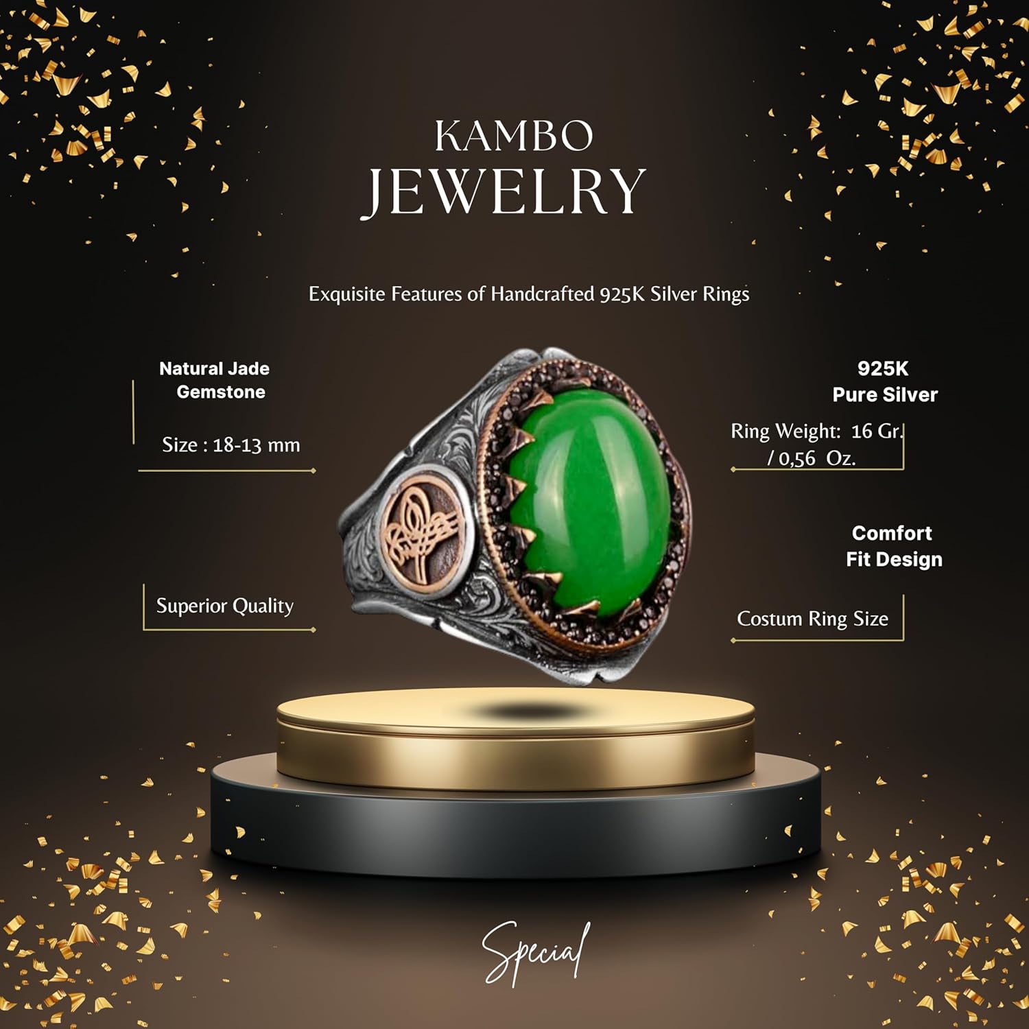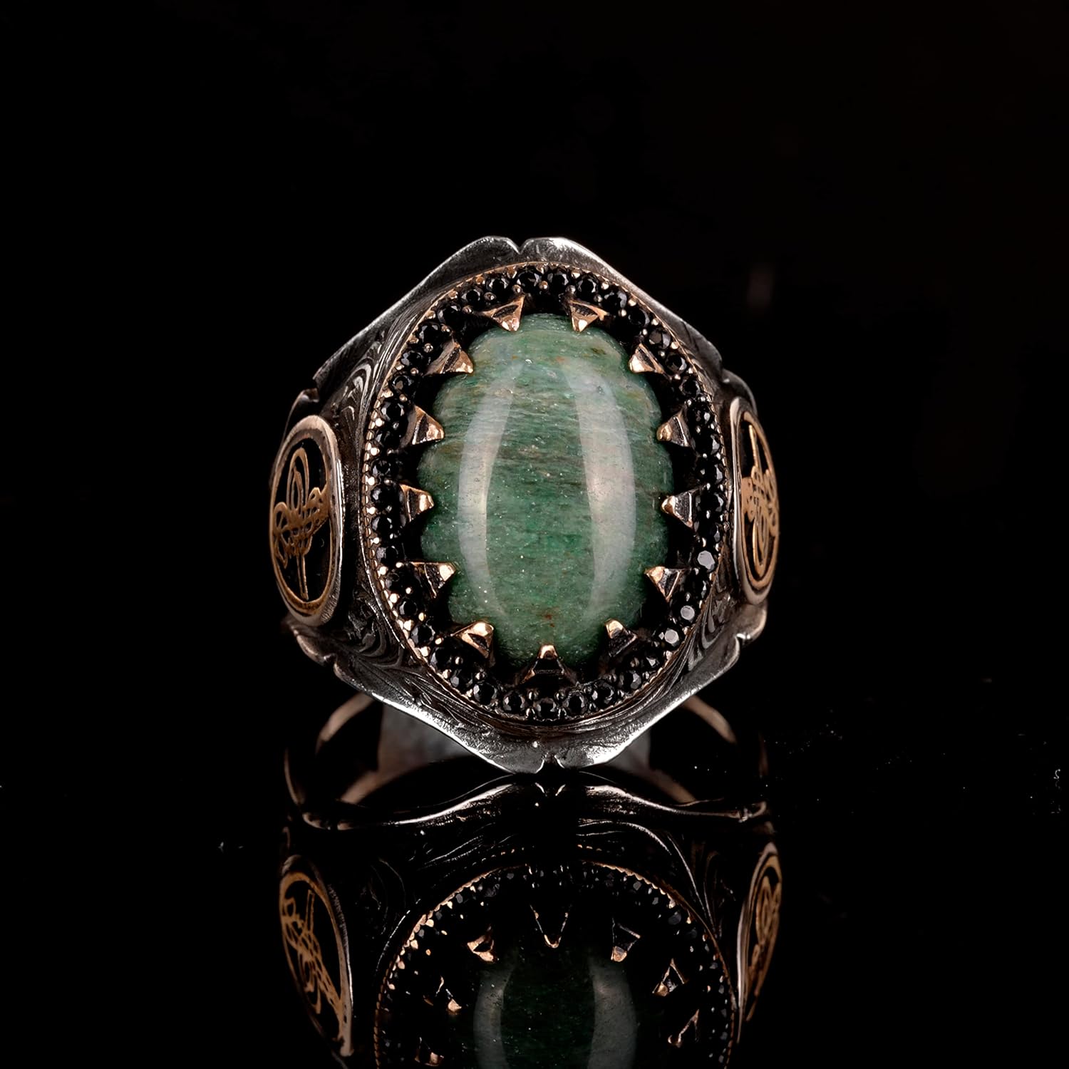 Erkekler için 925 Ayar Gümüş Yüzük - Doğal Jade Taşlı Yüzük