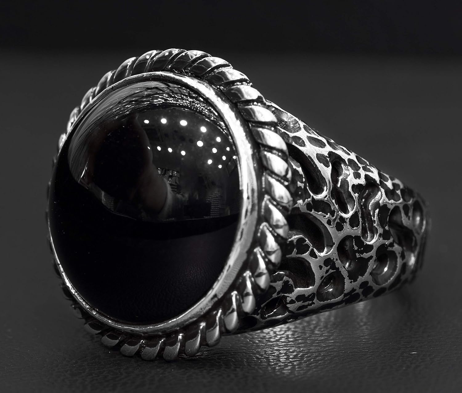 Erkekler için 925 Ayar Gümüş Yüzük - Doğal Oniks Taşı ile Cesur ve Şık Tasarım
