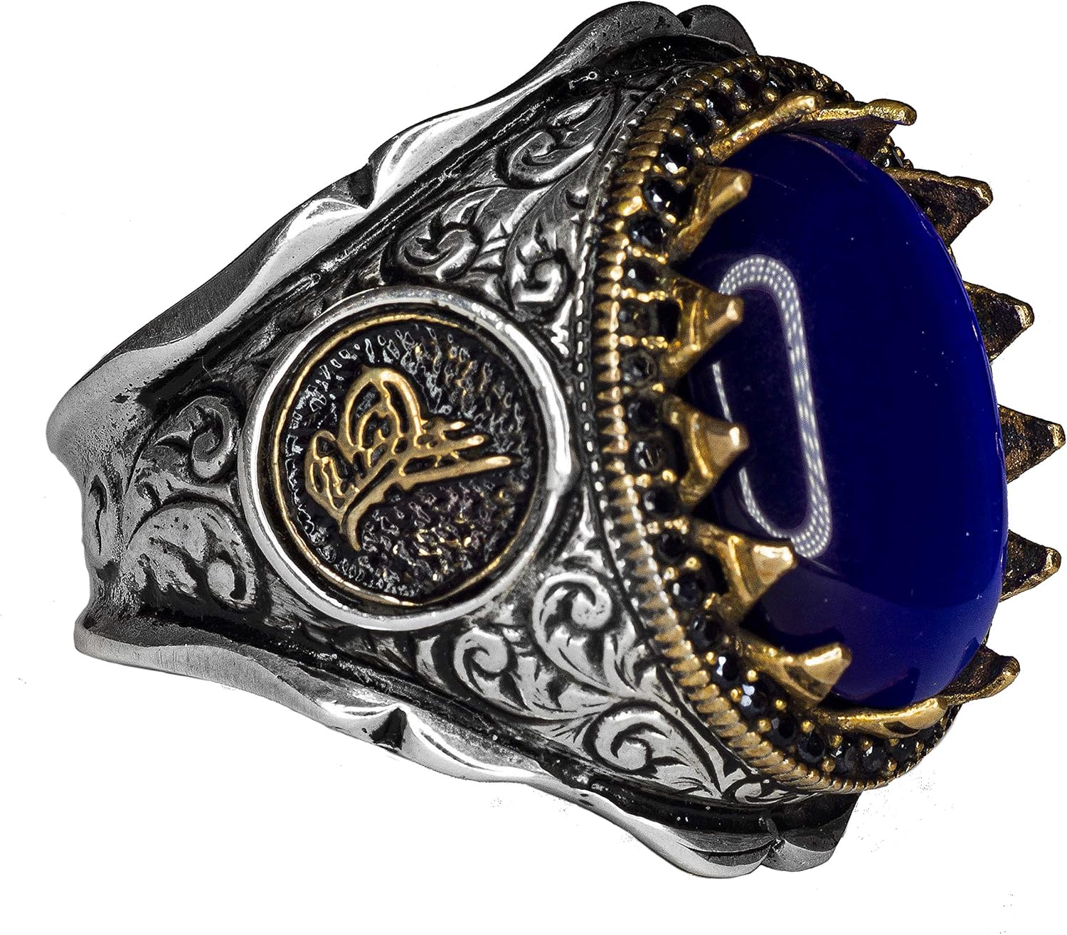 Erkekler için 925 Ayar Gümüş Yüzük - Peygamber Muhammad Yazılı - İslami Camii Nakışlı 3D Tasarım