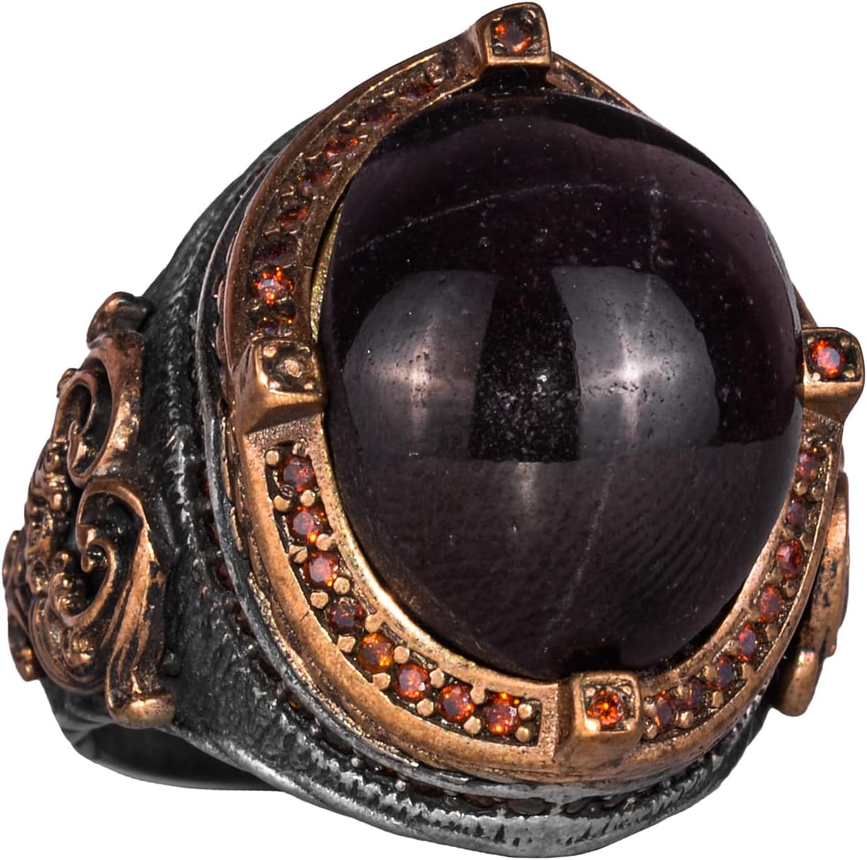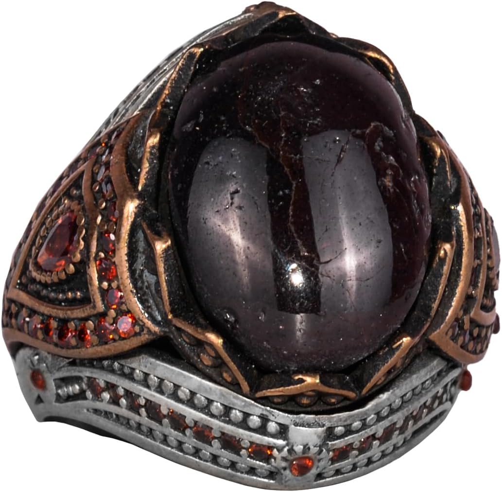 925 Ayar Gümüş Erkek Yüzük Doğal Yıldız Granat Taşı ile - El Yapımı Vintage Gümüş Takı Erkekler İçin