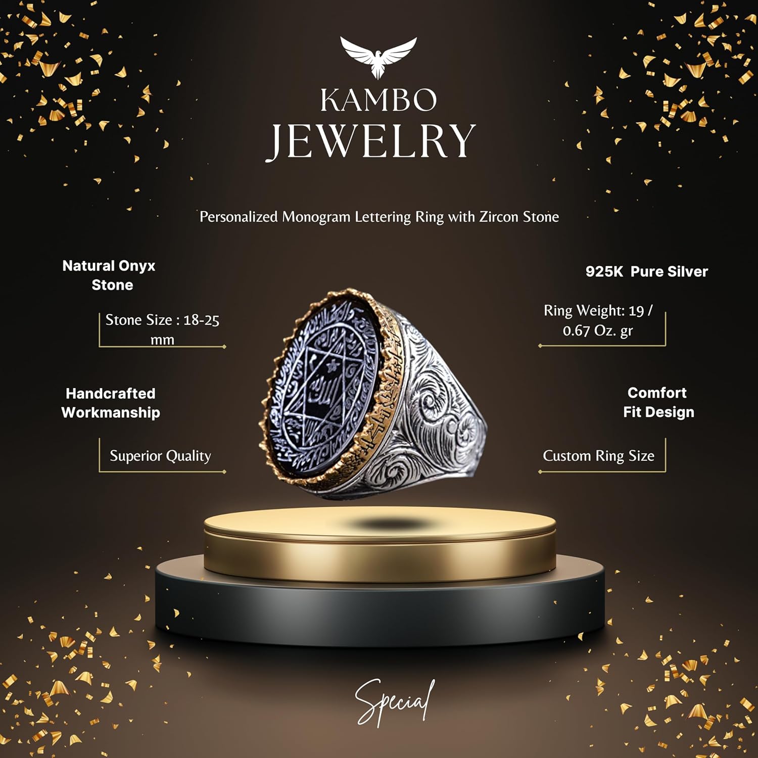 925 Ayar Gümüş Erkek Yüzük Siyah Oniks Taşı ve Süleyman Mührü Tasarımı
