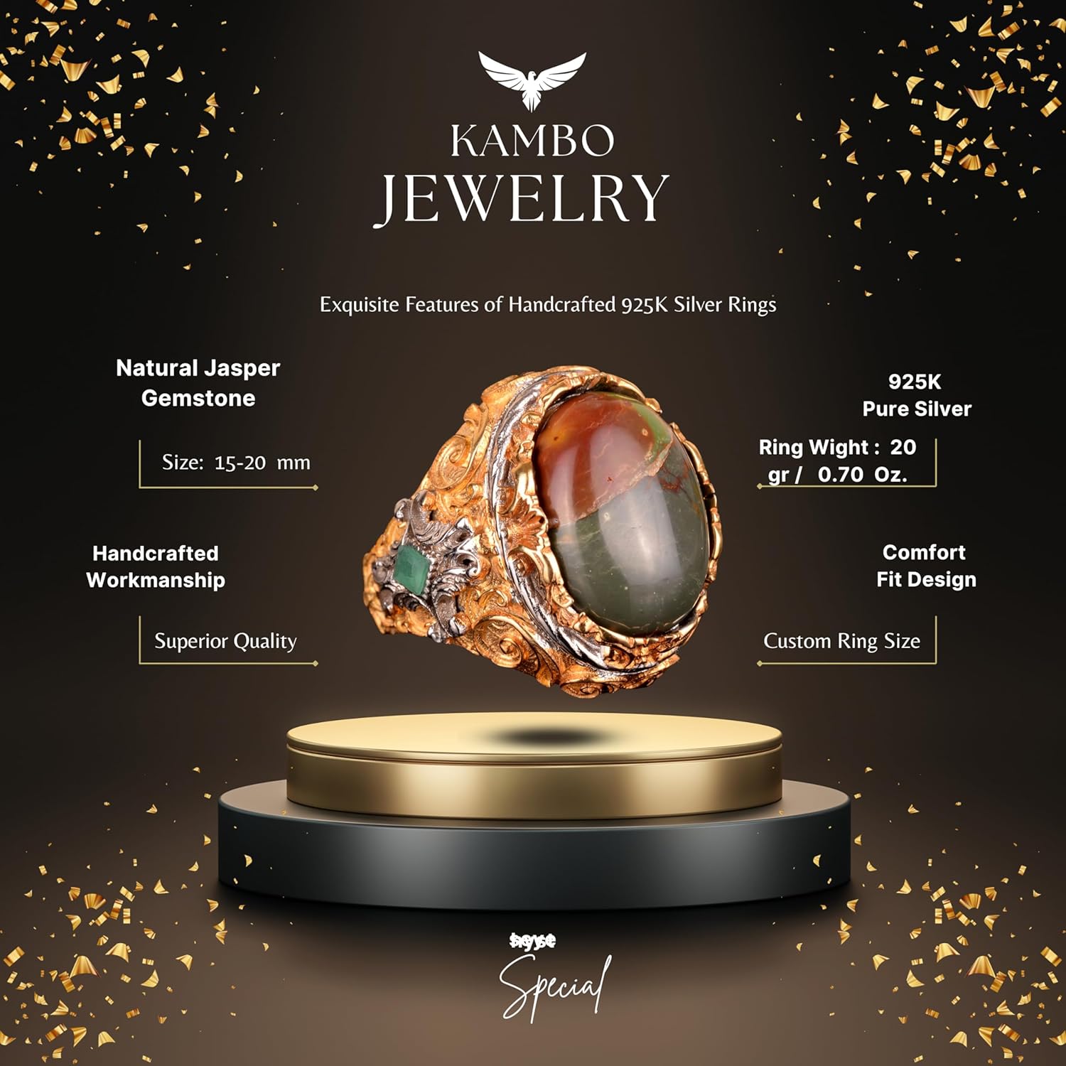 925 Ayar Gümüş Erkek Yüzük ile Doğal Jasper Taşı - Cesur ve Şık Tasarım, Günlük Kullanım ve Özel Günler İçin İdeal
