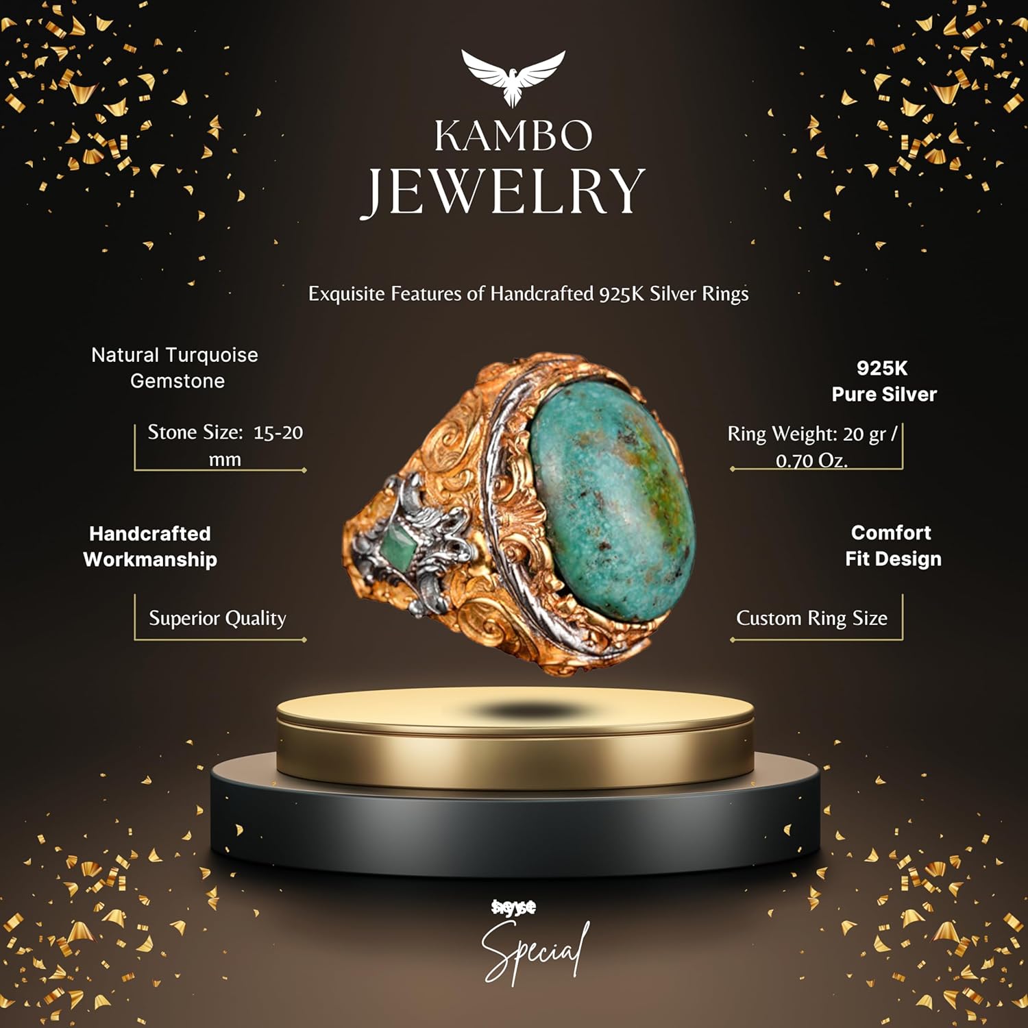 925 Ayar Gümüş Erkek Yüzük ile Doğal Arizona Turkuaz Taşı - Cesur ve Şık Tasarım, Günlük Kullanım ve Özel Etkinlikler için İdeal (Stil-4)