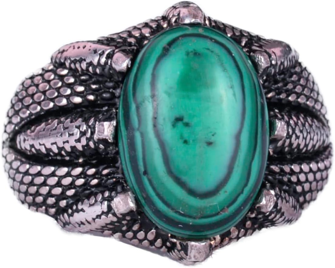 925 Ayar Gümüş Erkek Yüzük, Doğal Taşlı, El Yapımı Vintage Tasarım Pençeli Yüzük (Malaşit)