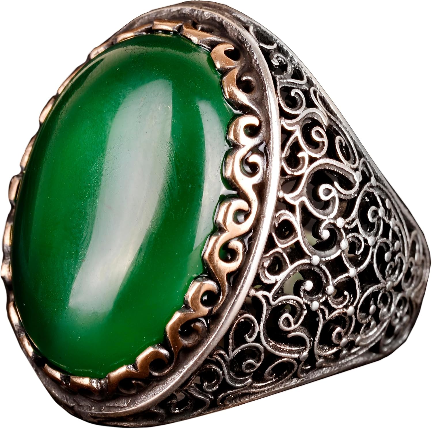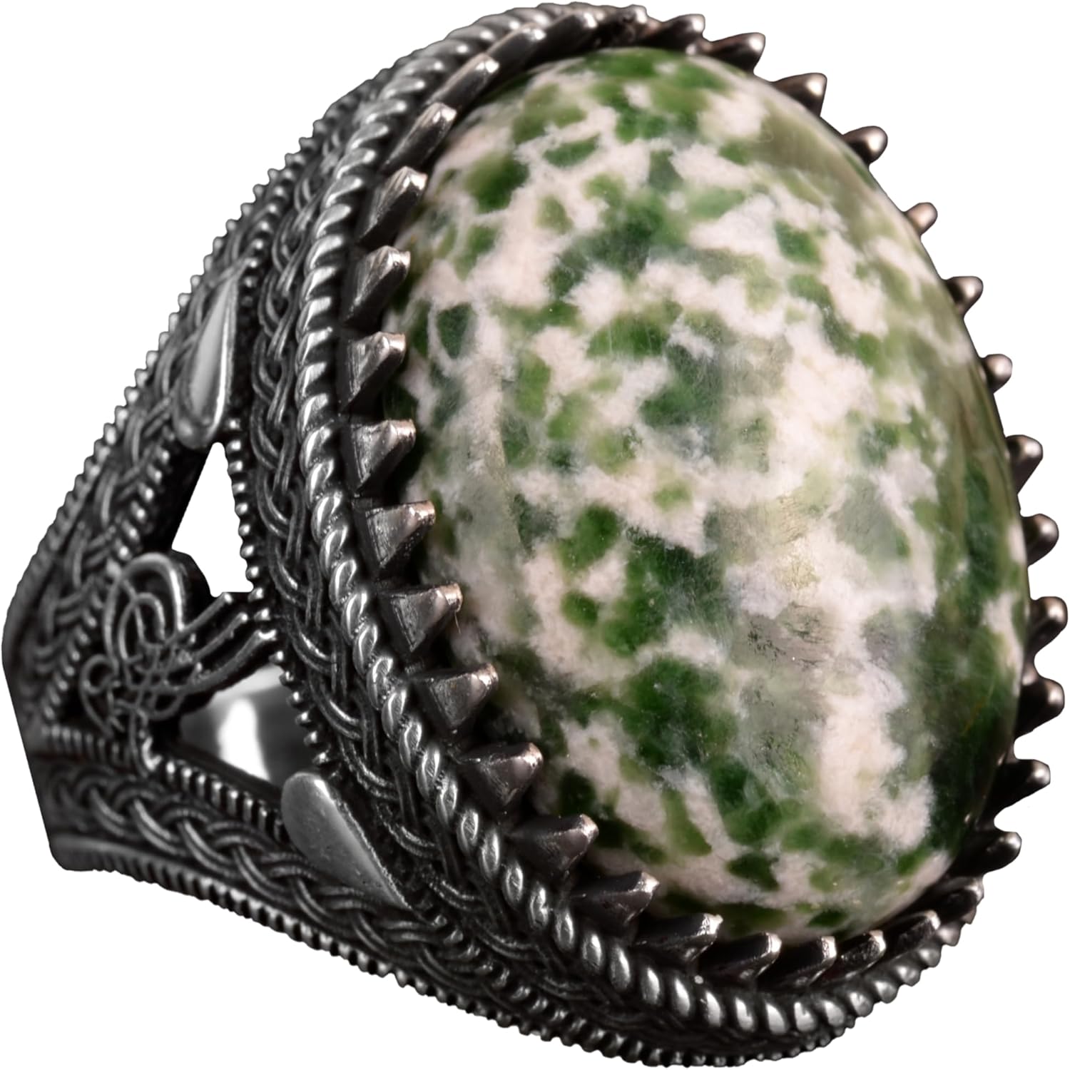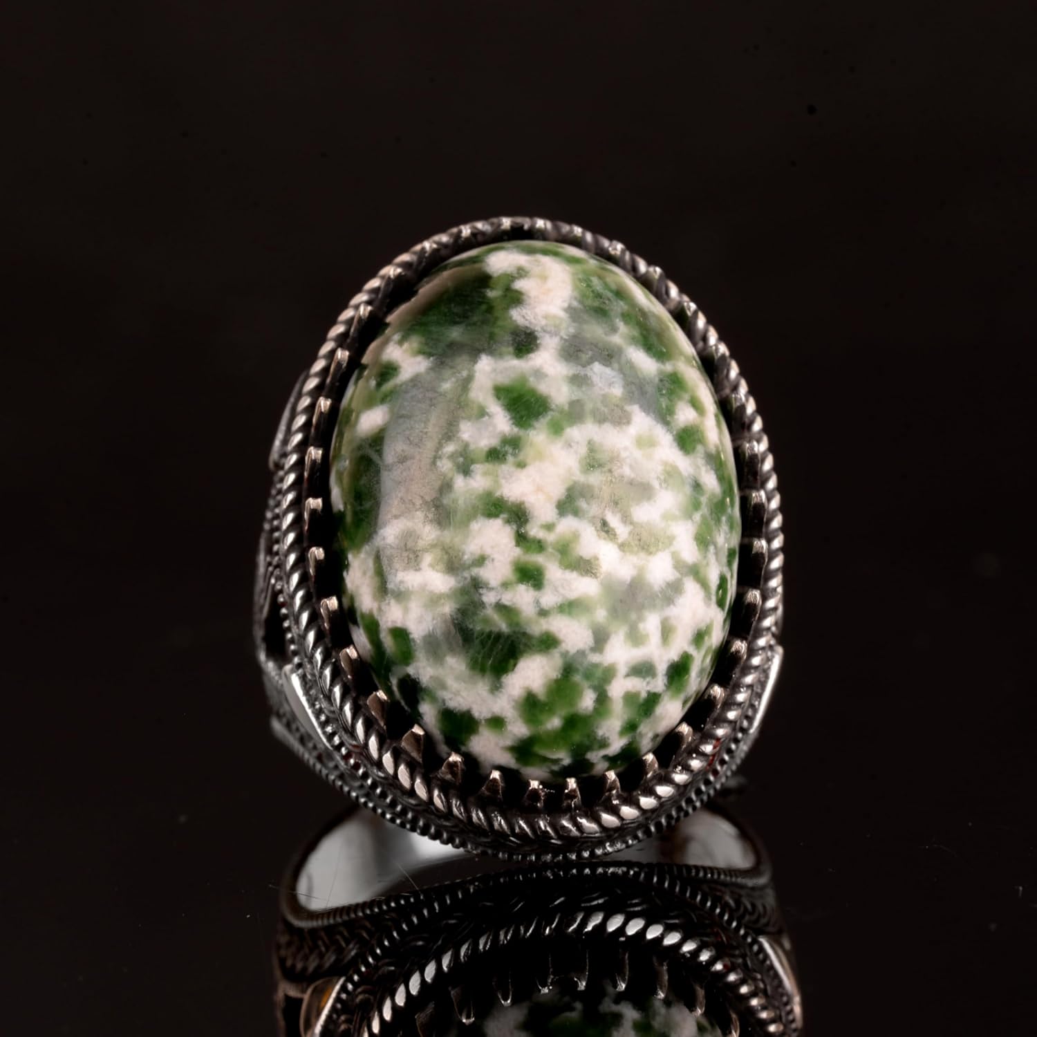 925 Ayar Gümüş Erkek Yüzük, Doğal Yeşim Taşı Yüzük, Oval Benekli Yeşim