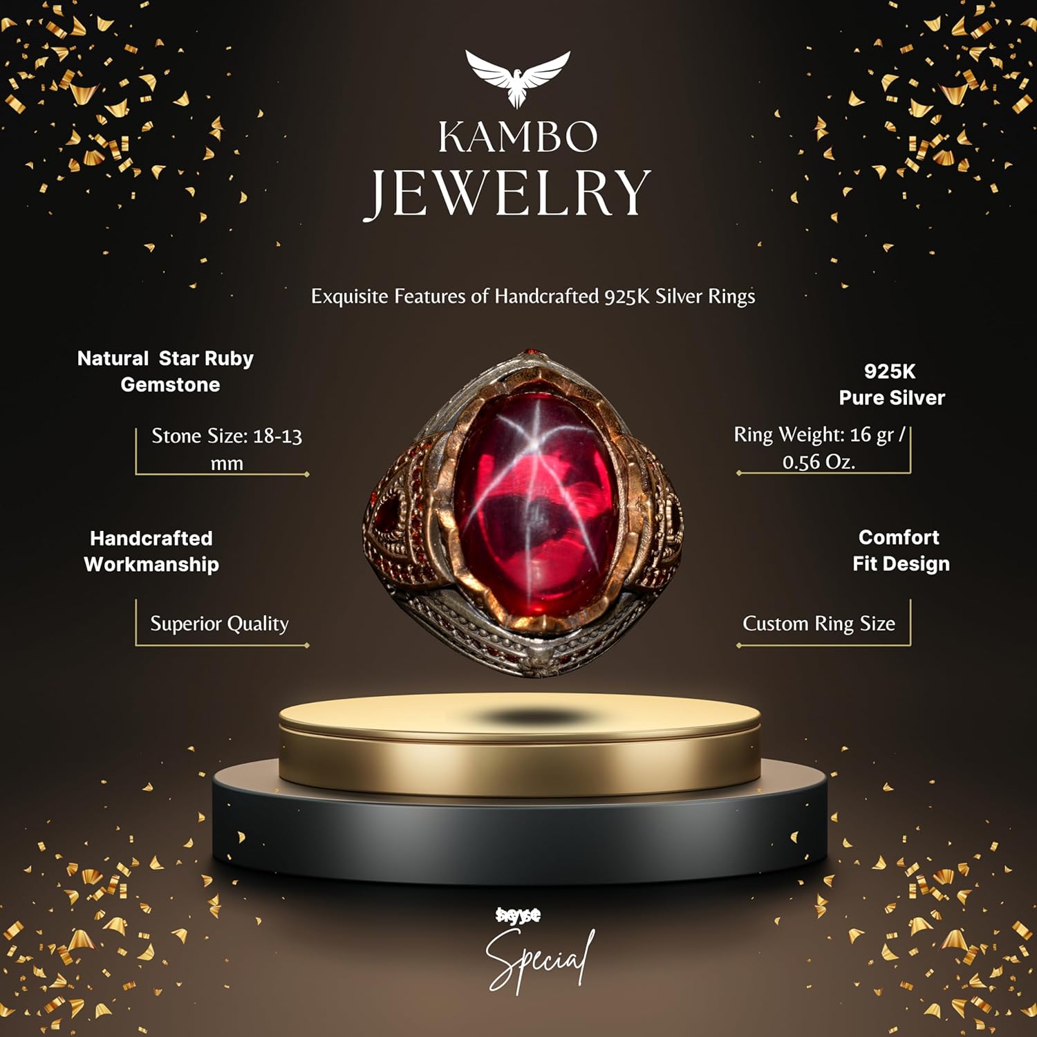 925 Ayar Gümüş Erkek Yüzük, El Yapımı Doğal Yıldız Yakut Taşlı Yüzük, Tasarım Gümüş Erkek Yüzük