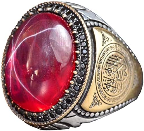 925 Ayar Gümüş Erkek Yüzük, Gerçek Doğal Taş Yüzük, İslami Yüzük (Yıldız Yakutu)