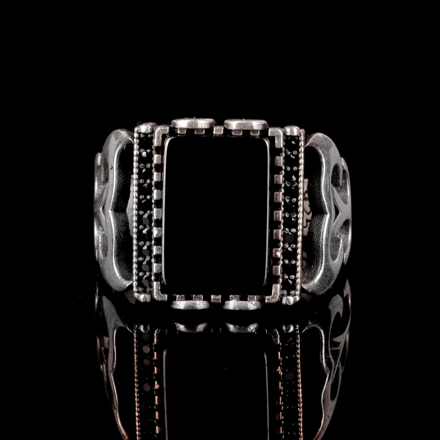 925 Ayar Gümüş Erkek Yüzük, Gerçek Doğal Obsidyen Taşı Yüzük