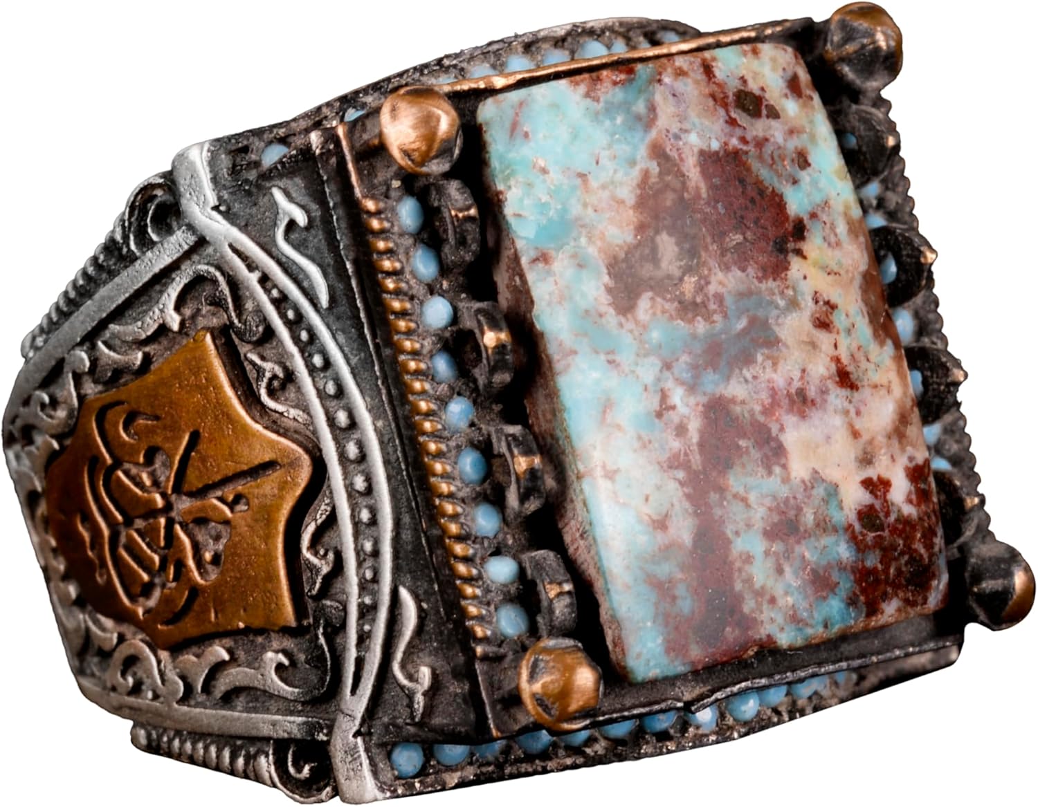 925 Ayar Gümüş Erkek Yüzük, Gerçek Arizona Turkuaz Doğal Taş Yüzük