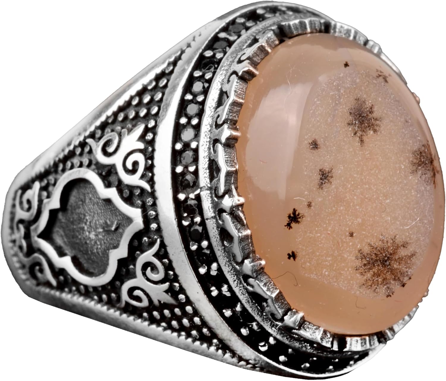 925 Ayar Gümüş Erkek Yüzük, Gerçek Doğal Drusy Kuvars Taş Yüzük