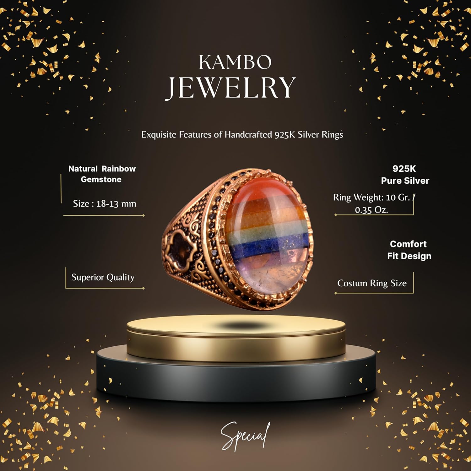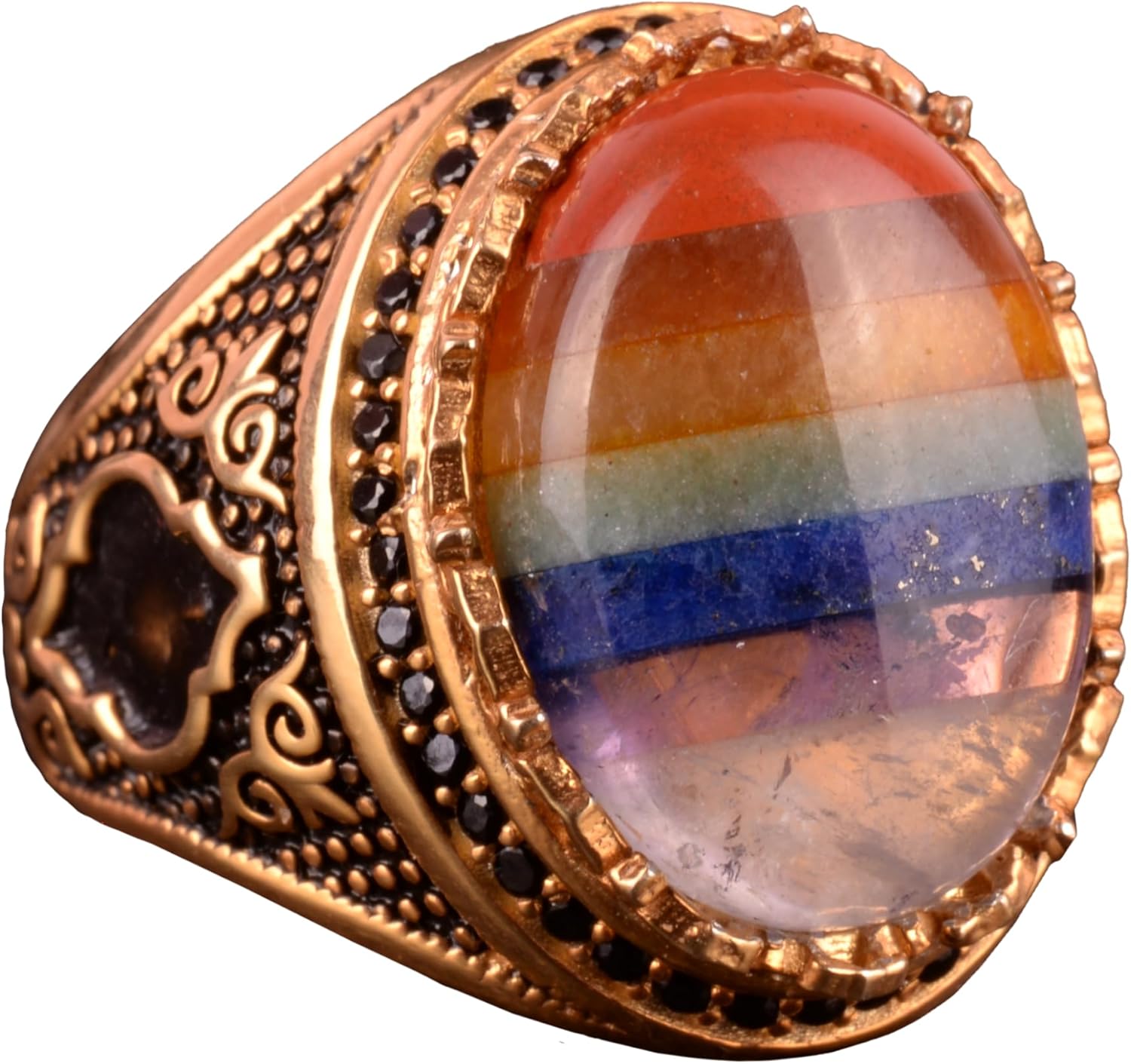 925 Ayar Gümüş Erkek Yüzük, Gerçek Doğal Taşlı Gökkuşağı Yüzük, Oval Çok Renkli