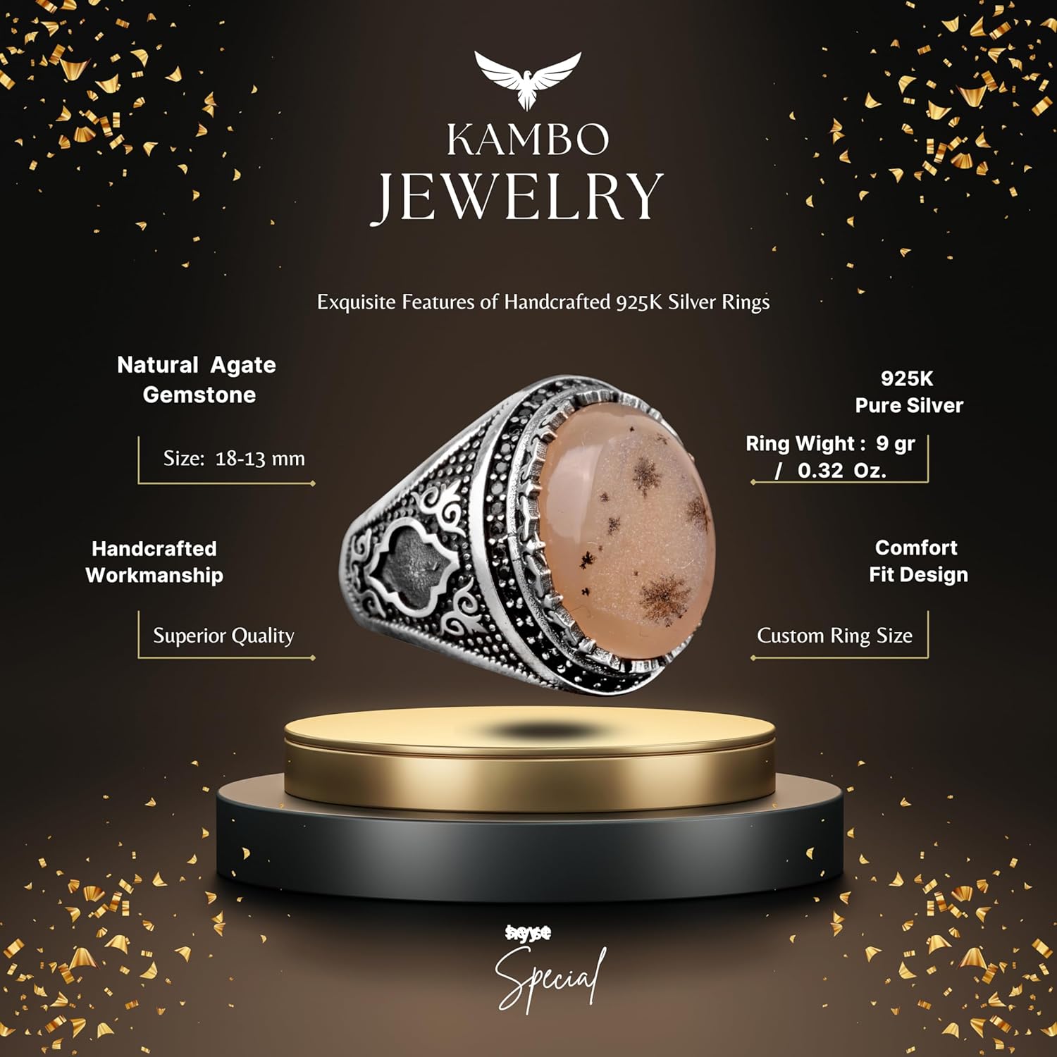 925 Ayar Gümüş Erkek Yüzük, Gerçek Doğal Yemen Akik Taşı Yüzük, Oval Tuğra Yüzük