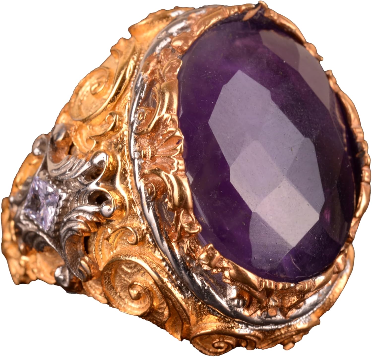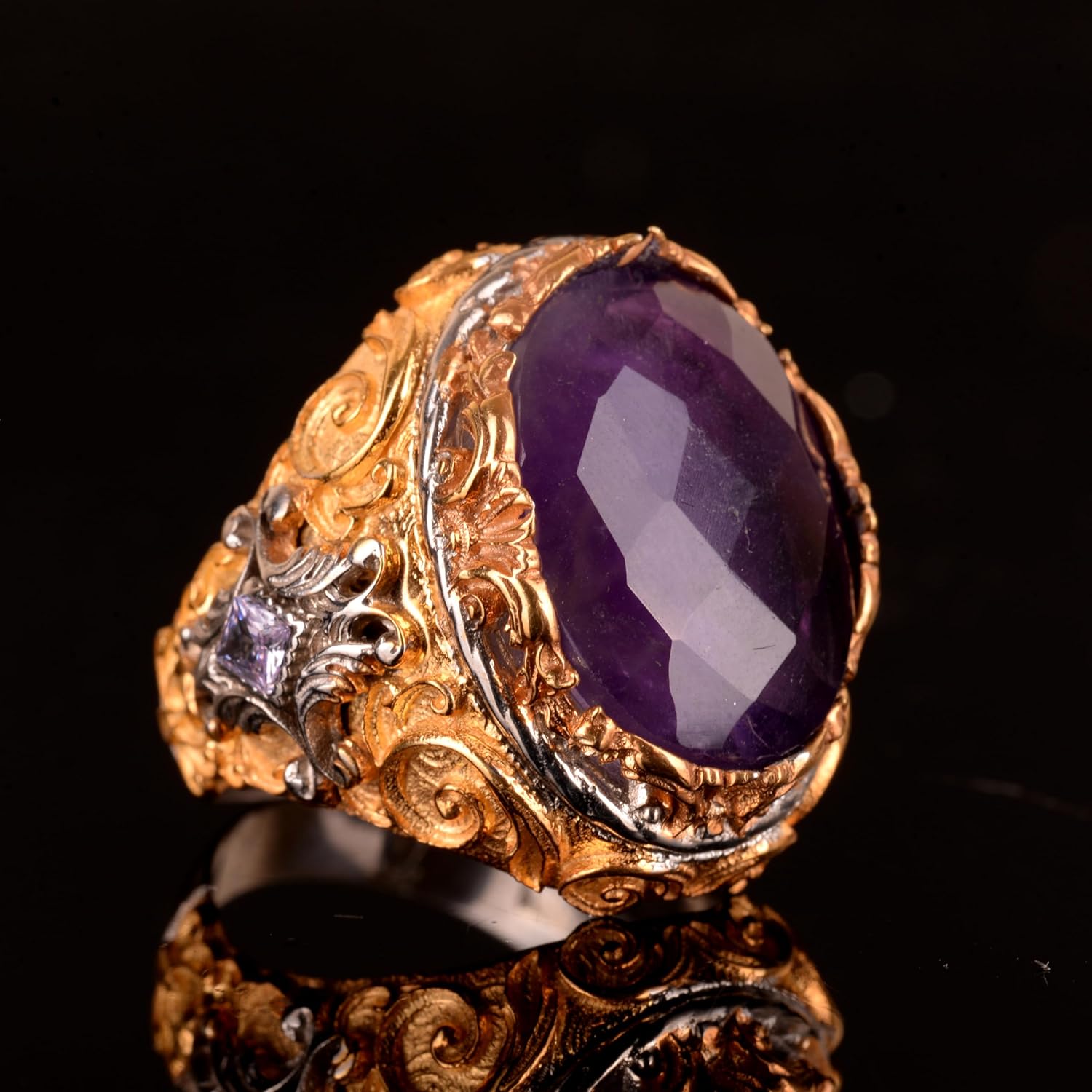 925 Ayar Gümüş Erkek Yüzük, Gerçek Doğal Ametist Taşlı Yüzük, Sultan Yüzüğü