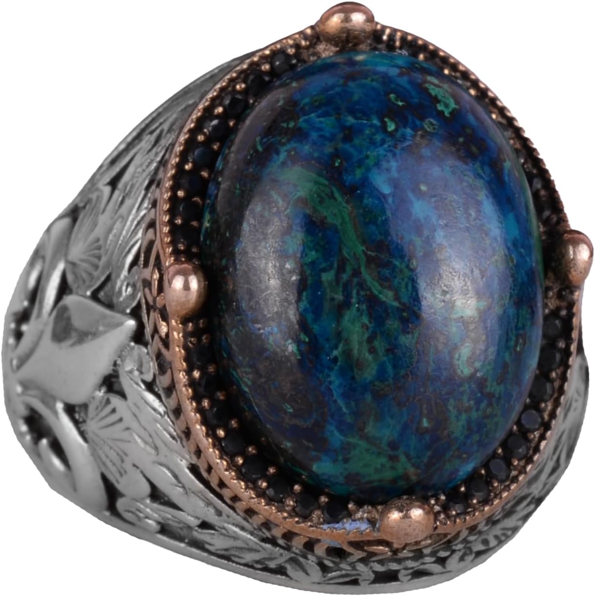 925 Ayar Gümüş El Yapımı Erkek Yüzük - Çeşitli Doğal Taşlarla Mevcut (Azurit)