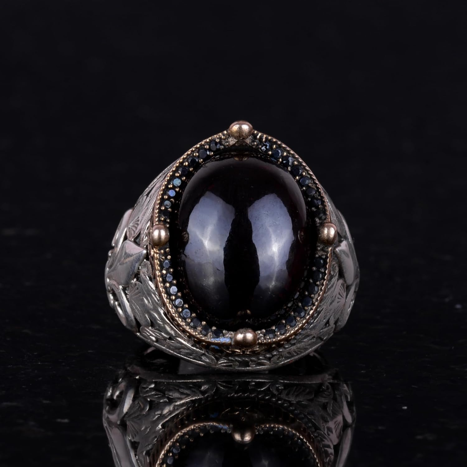 925 Ayar Gümüş El Yapımı Erkek Yüzük - Çeşitli Doğal Taşlarla Mevcut (Granat)
