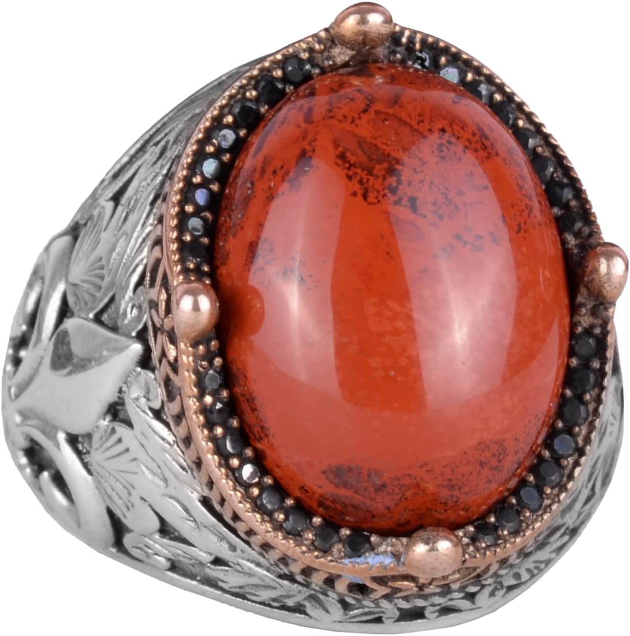 925 Ayar Gümüş El Yapımı Erkek Yüzük - Çeşitli Doğal Taşlarla Mevcut (Kan Taşı)