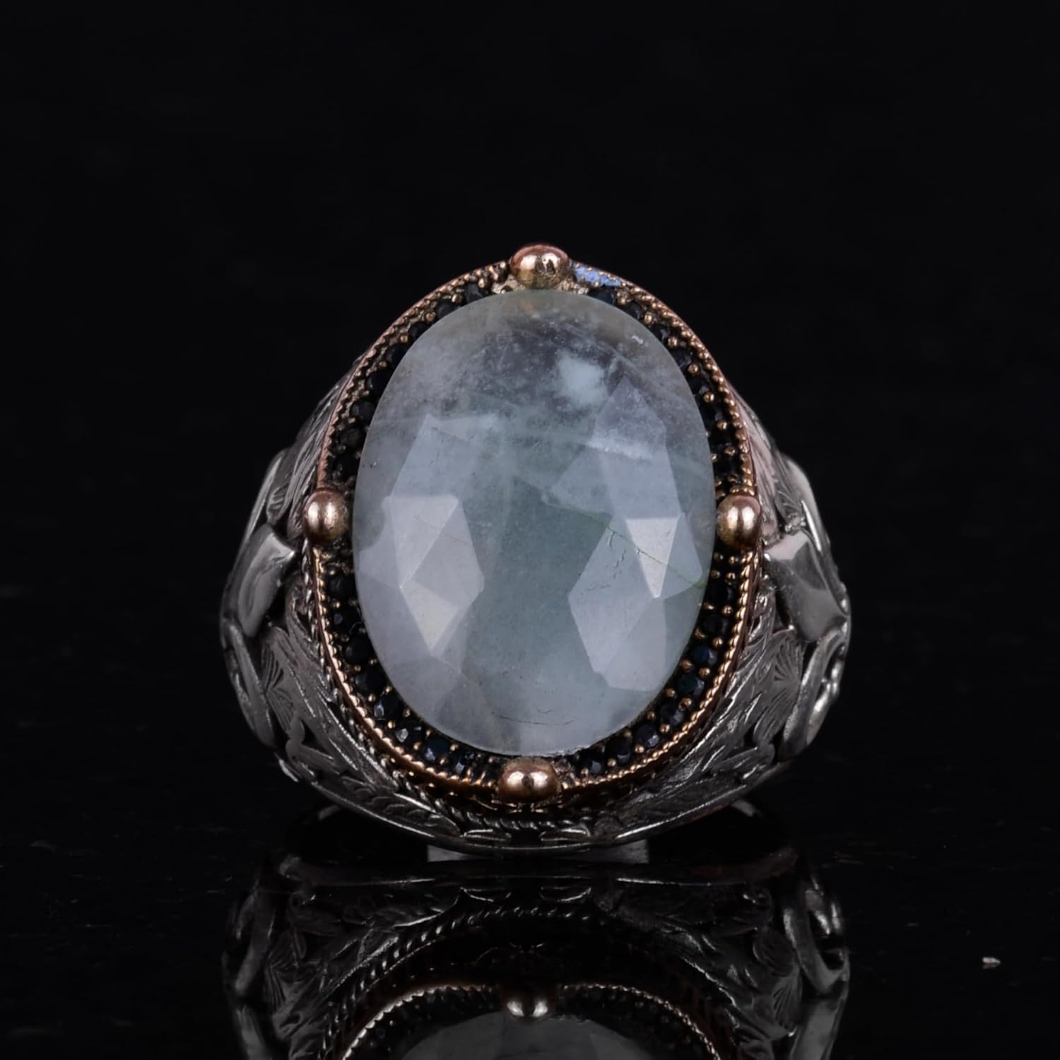 925 Ayar Gümüş El Yapımı Erkek Yüzük - Çeşitli Doğal Taşlarla Mevcut (Akvamarin)