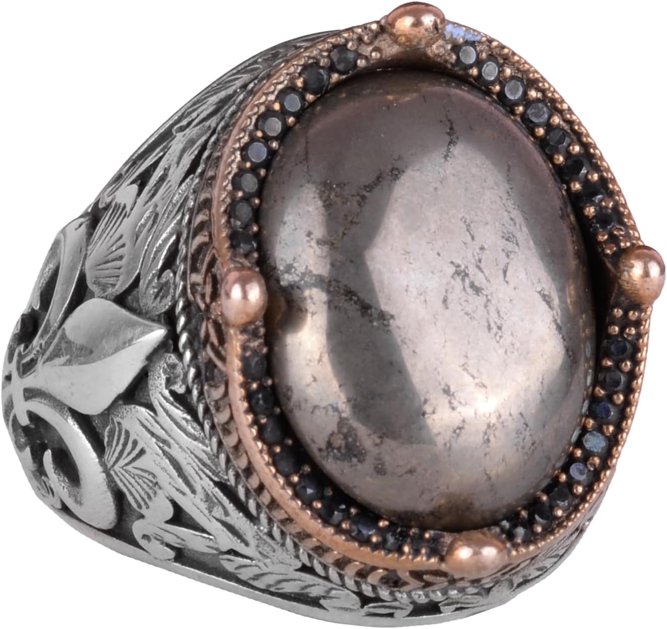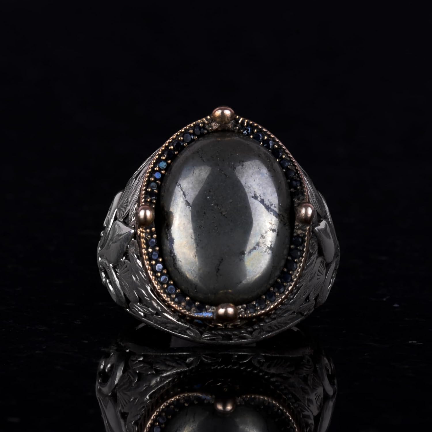 925 Ayar Gümüş El Yapımı Erkek Yüzük - Çeşitli Doğal Taşlarla Mevcut (Demir Pirit)