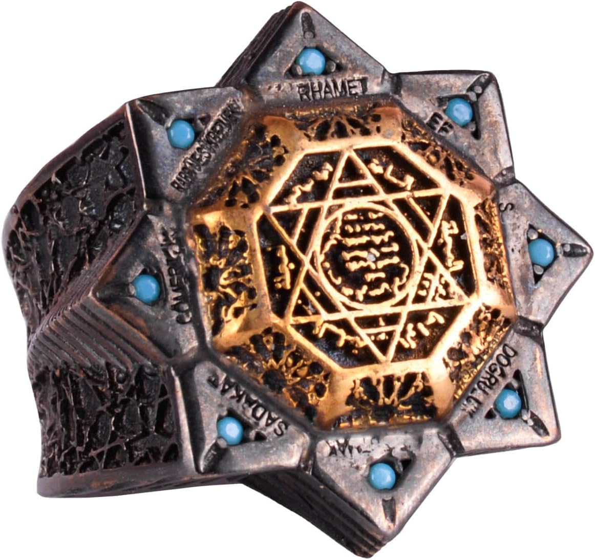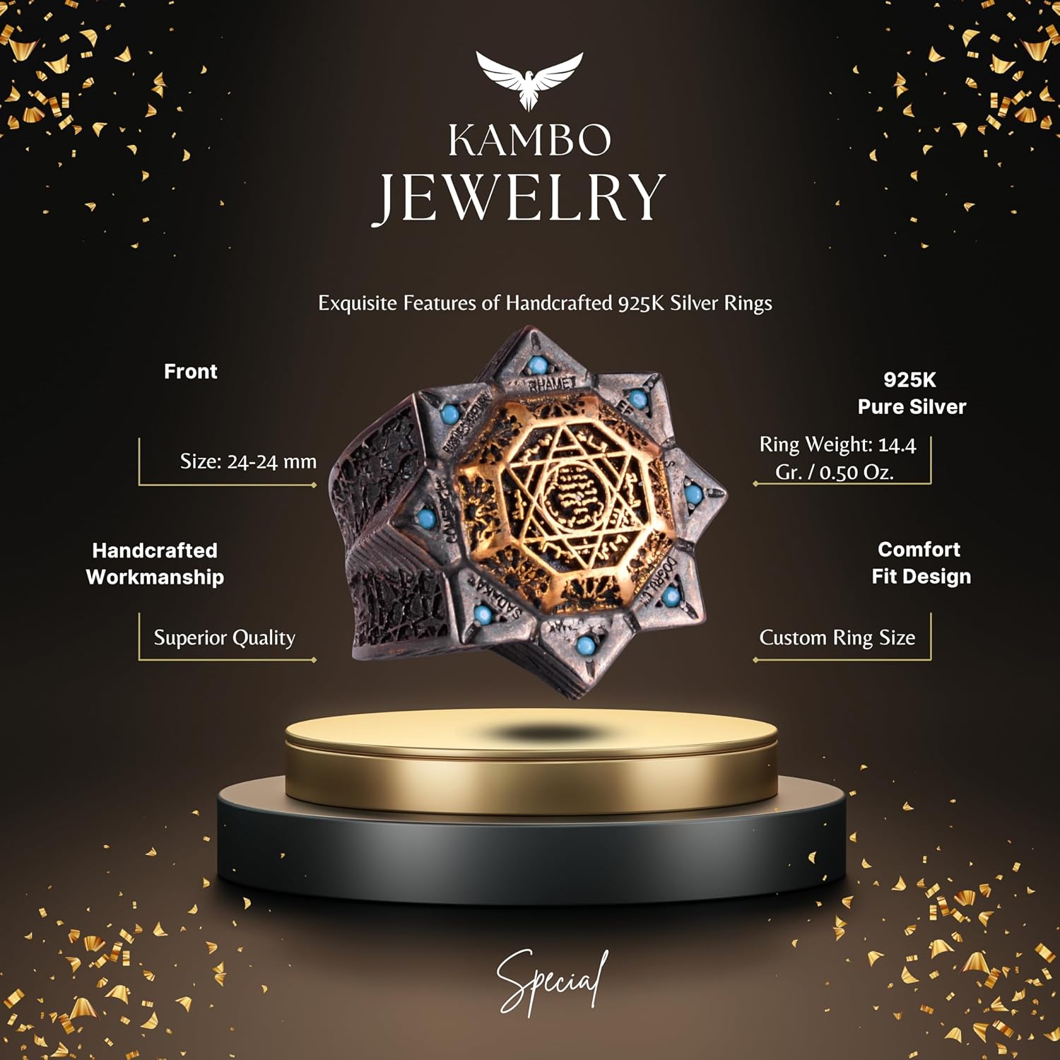 925 Ayar Gümüş Erkek Yüzük, Zirkon Taşlı - David Yıldızı ve Süleyman Mühürü Tasarımlı Yüzük (Mavi Zirkon)