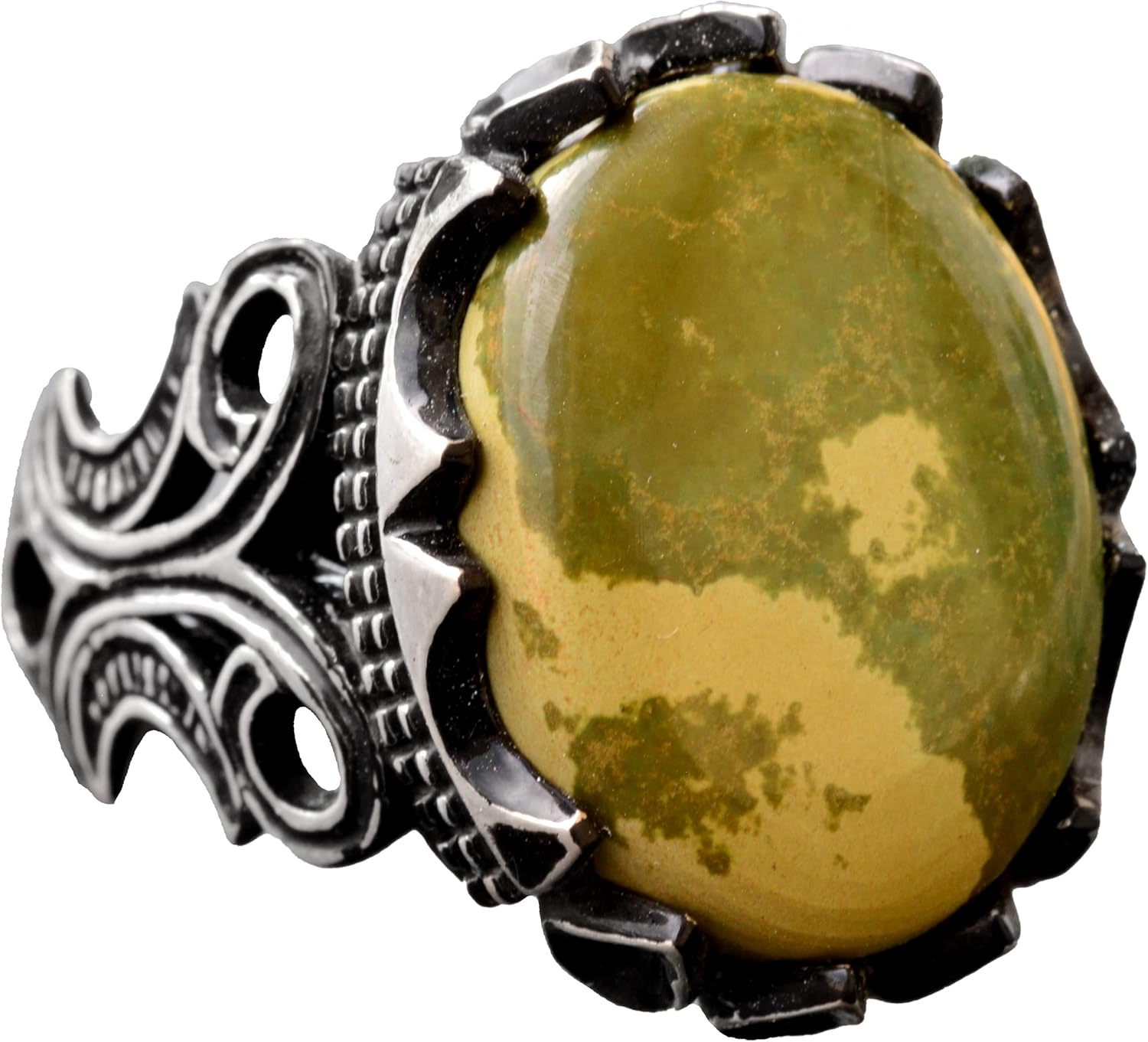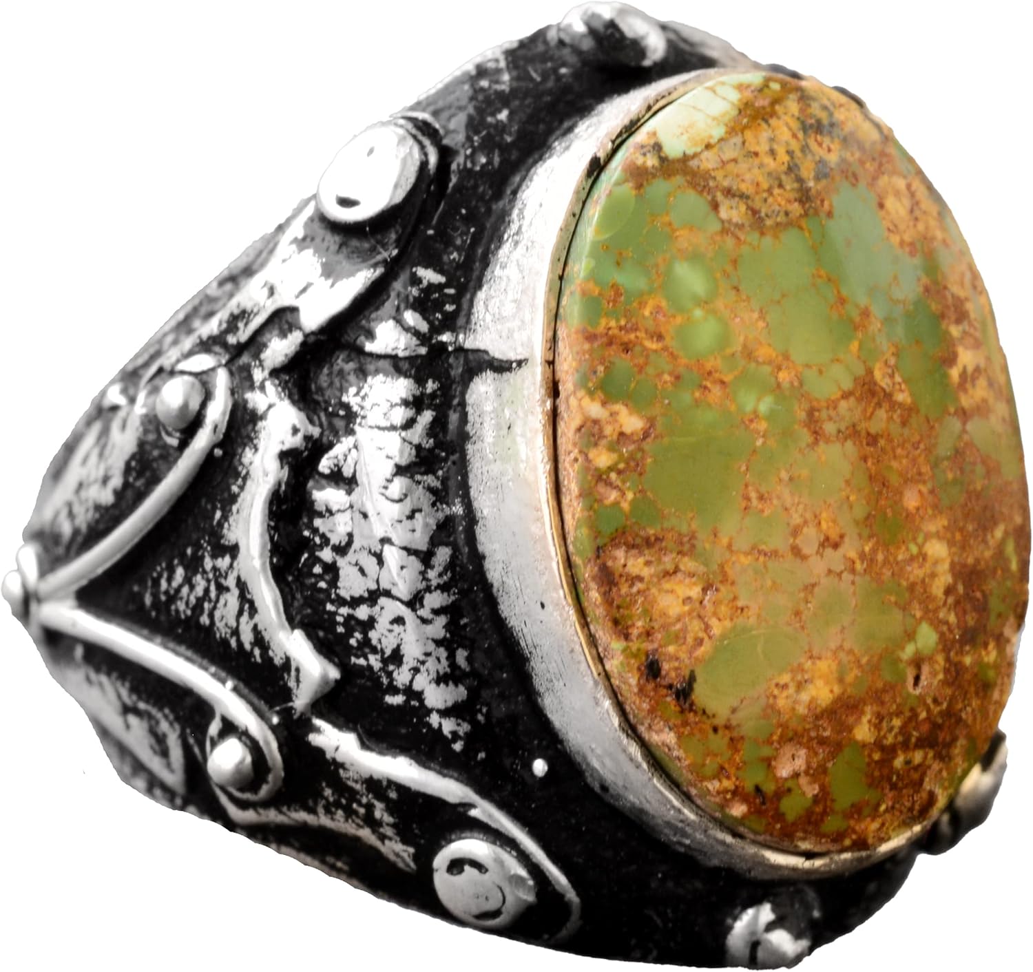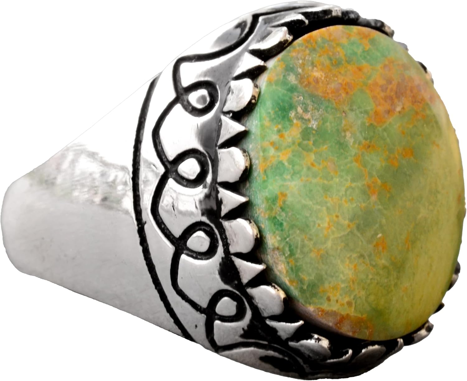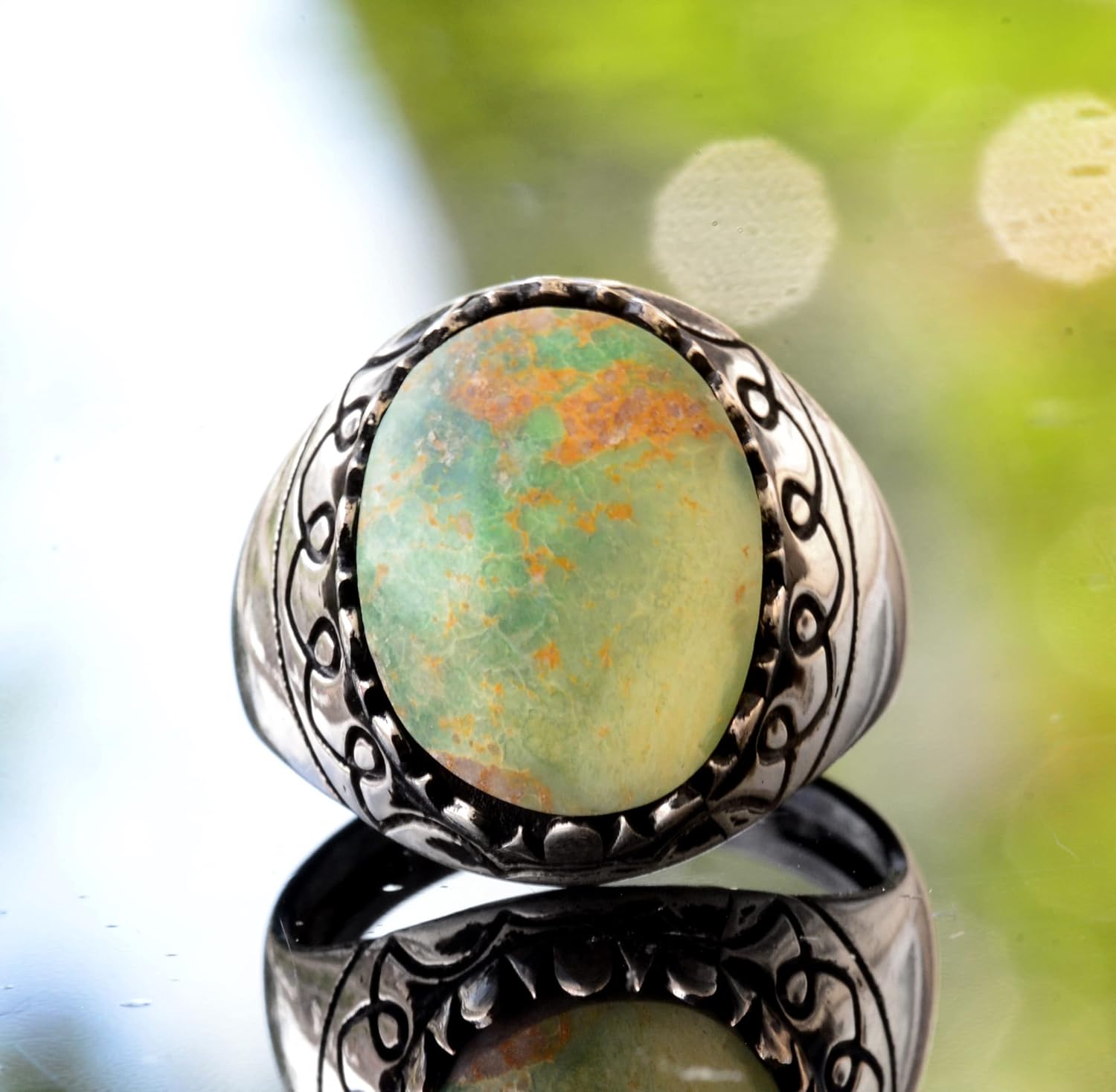 925 Ayar Gümüş Erkek Yüzük, Yeşil Turkuaz Taşı, Doğal Turkuaz Taşlı, El Yapımı Gümüş Yüzük