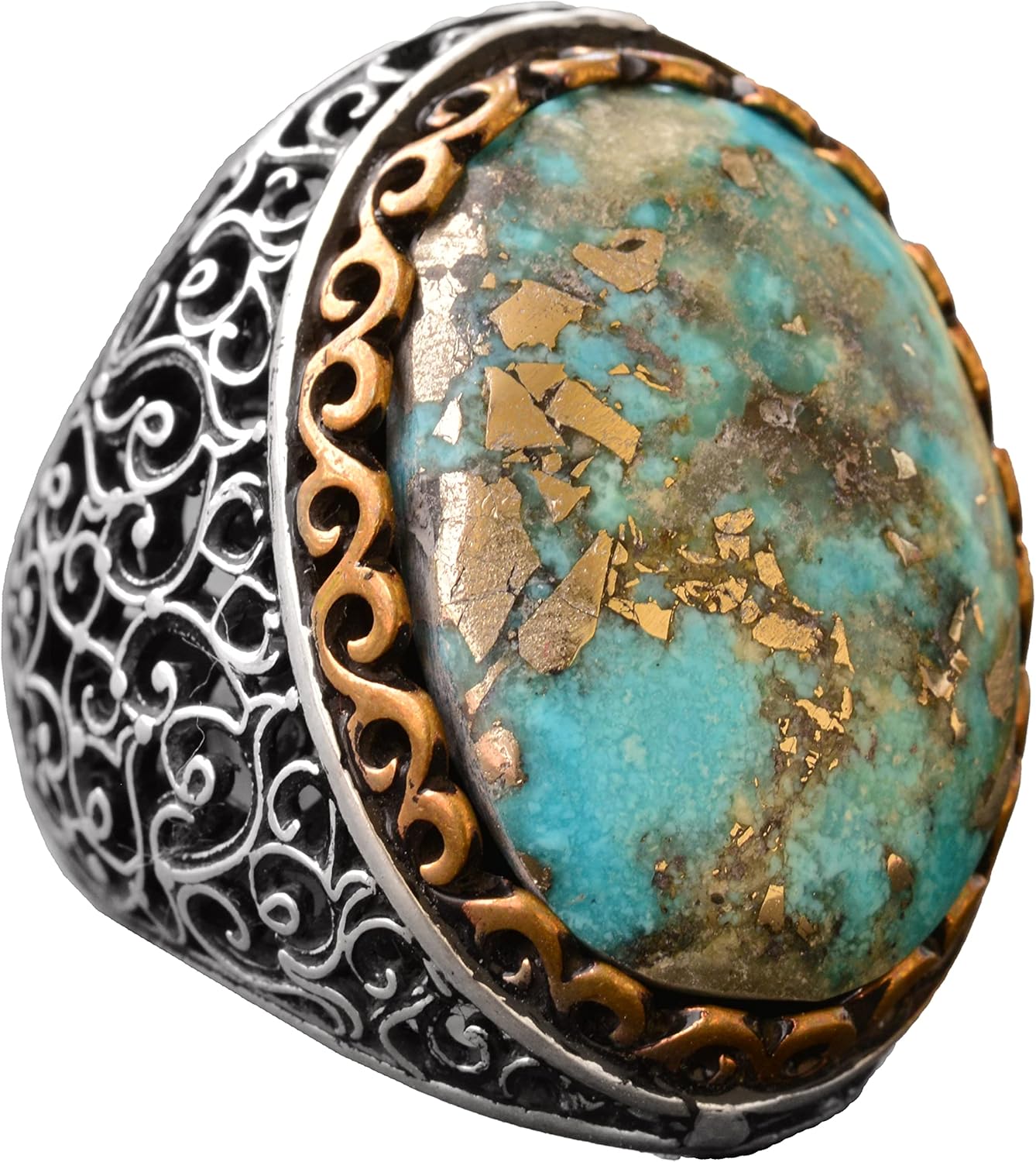 925 Ayar Gümüş Gerçek Arizona Turkuaz Taşlı Bizans Erkek Yüzüğü - El Yapımı Takı (Tarz-2)