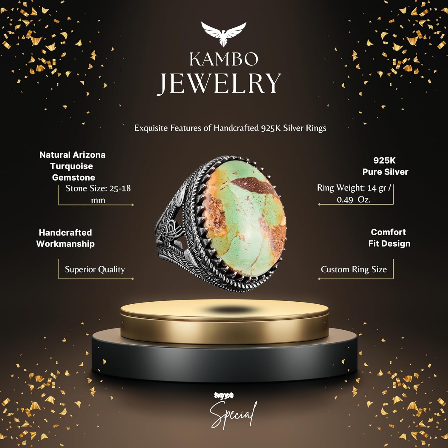 925 Ayar Gümüş Gerçek Doğal Arizona Turkuaz Taşlı Erkek Yüzük - El Yapımı İfadeli Takı