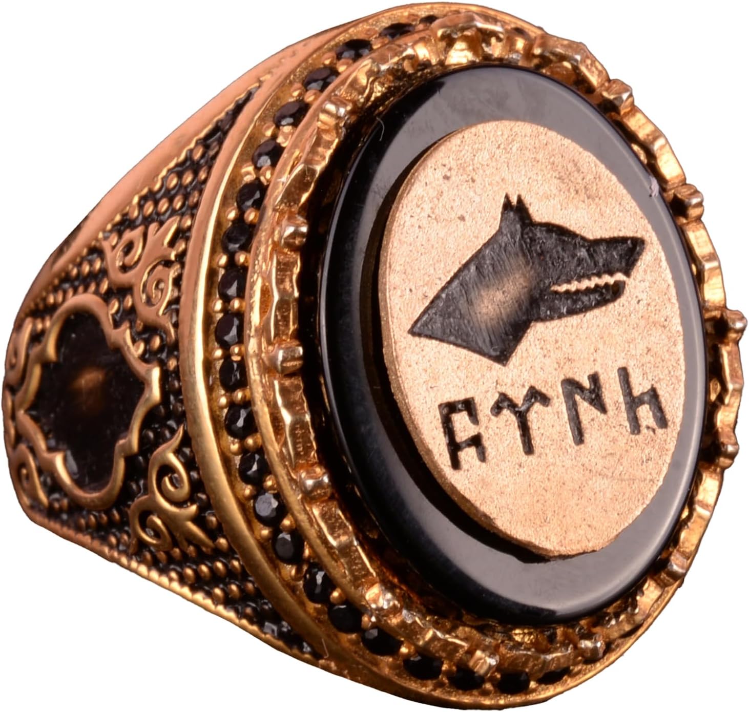 925 Ayar Gümüş Gök Türk Gri Kurt Yüzük - El Yapımı Vintage Tarzı Erkek Takısı