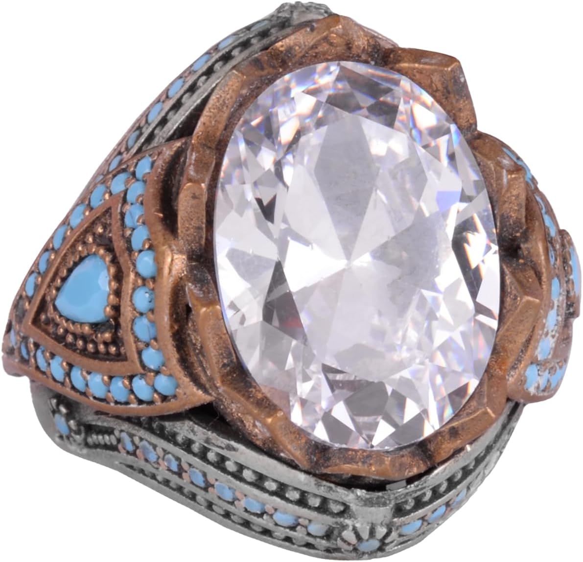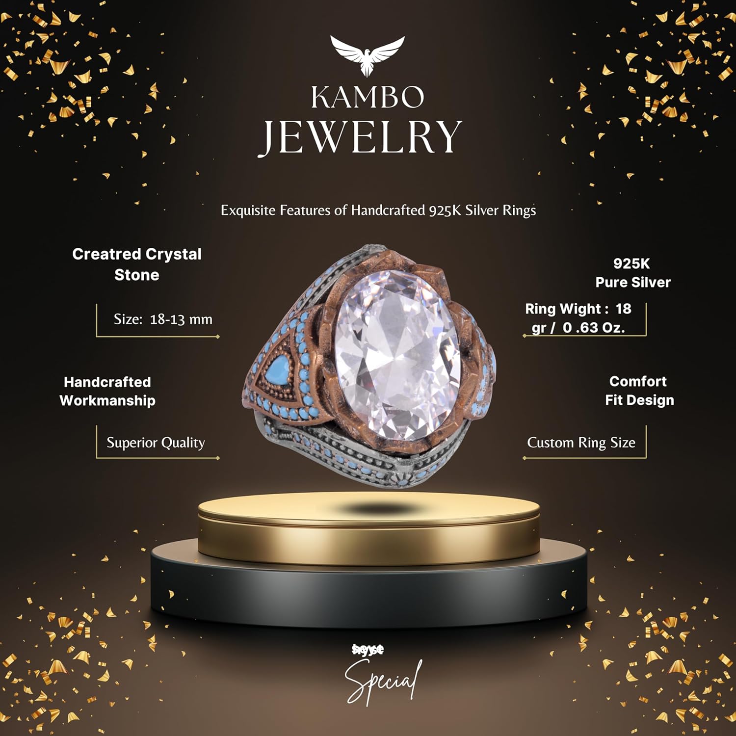 Oluşturulmuş Taş Yüzük - Şık El Yapımı 925 Ayar Gümüş Erkek Takısı - Erkek Yüzük (Oluşturulmuş Kristal)