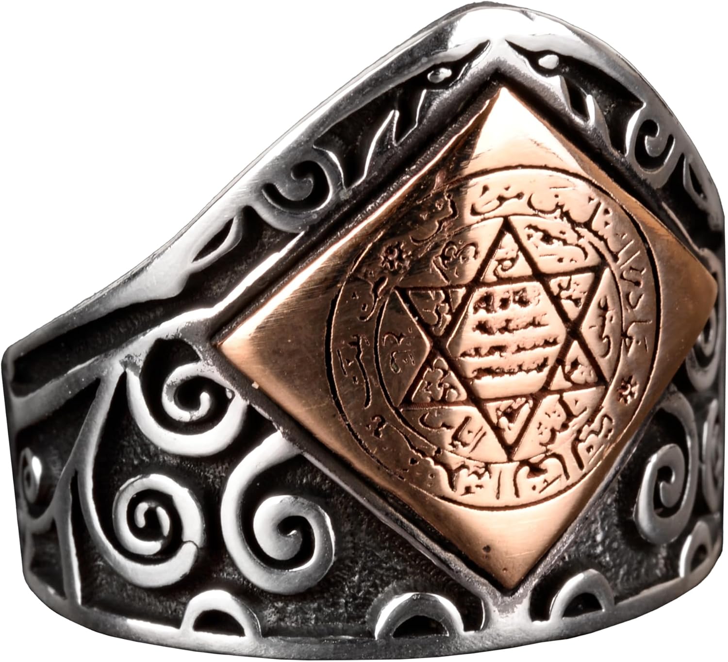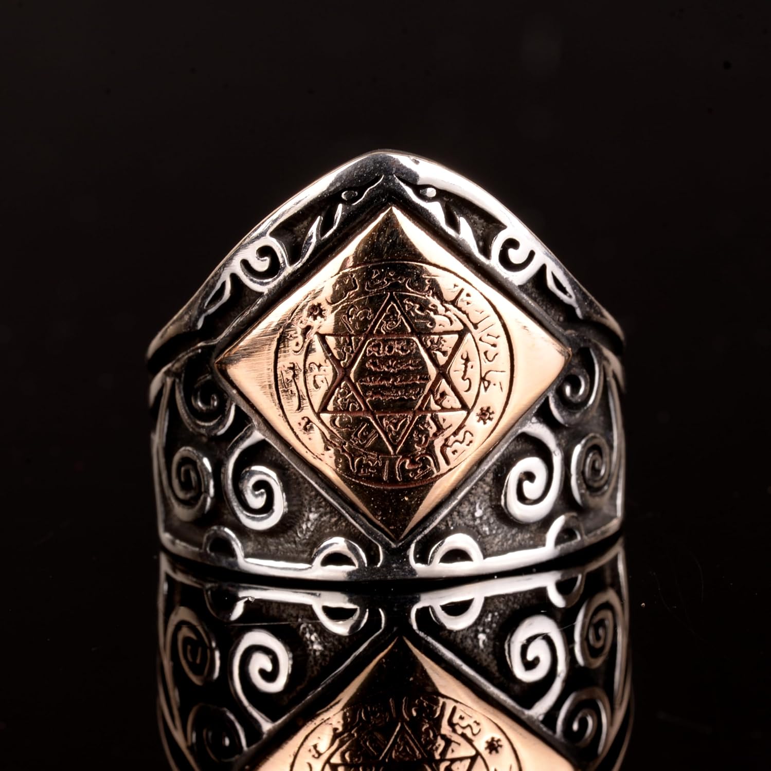 Okçu 925 Ayar Sterlin Gümüş Erkek Yüzük - Davud Yıldızı ve Kral Süleyman Tasarımı