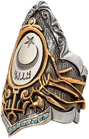 Okçular Yüzüğü, Davut Yıldızı Yüzüğü, İslami Başparmak Gümüş Erkek Yüzüğü, 925 Ayar Gümüş Yüzük (Ayarlanabilir)