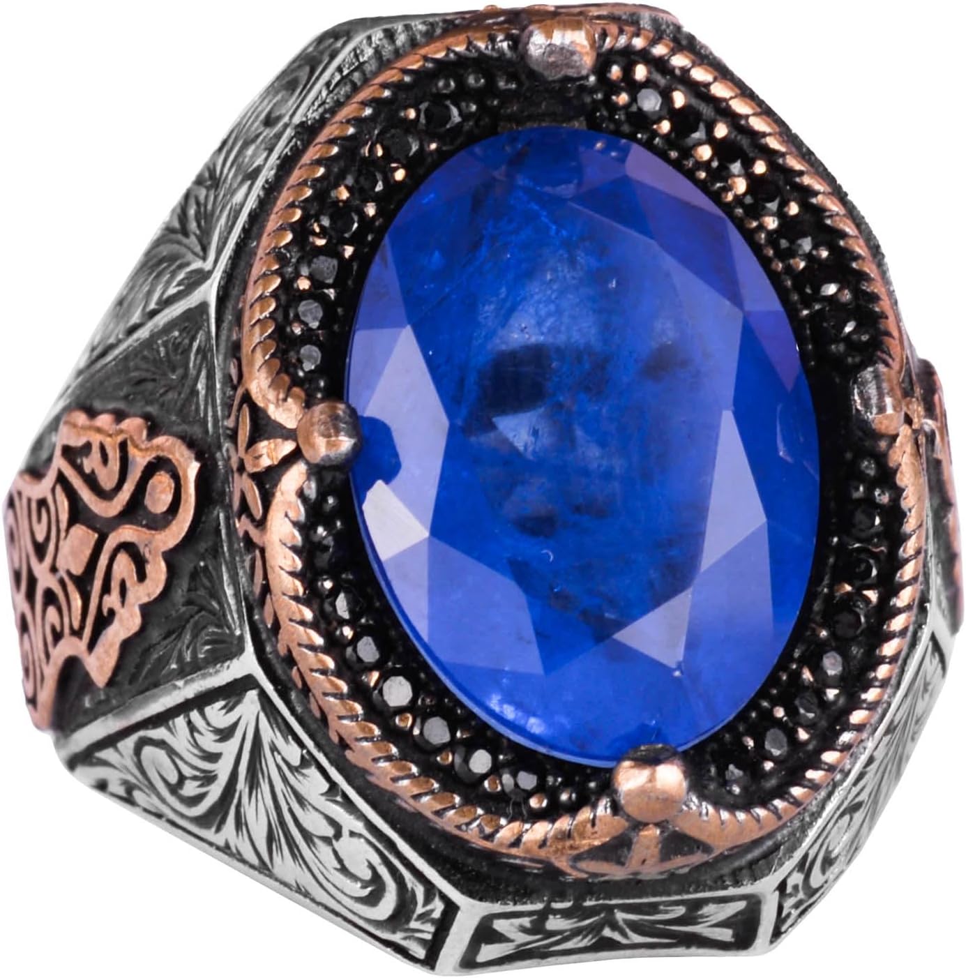 Navy Mavi Paraiba Yapay Taş Yüzük, 925 Ayar Gümüş Yüzük, Şık El Yapımı Gümüş Erkek Yüzüğü