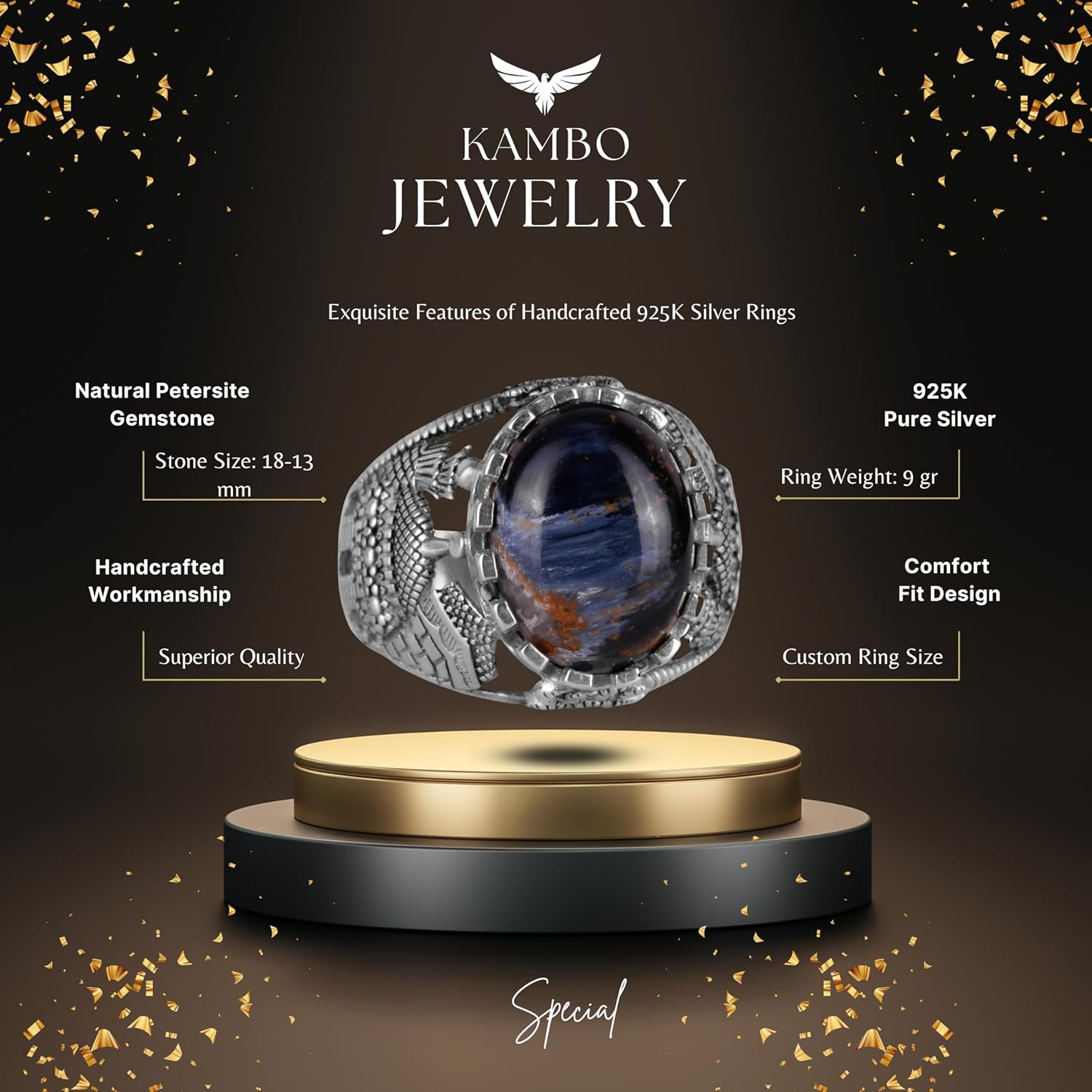Müslüman Pietersite Taş Yüzük, 925 Ayar Sterlin Gümüş Yüzük Erkekler İçin, Farklı Yüzük