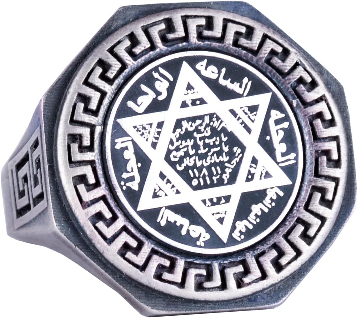 Süleyman Mührü 925 Ayar Gümüş Yüzük - Yunan Anahtarı Tasarımı Erkek Yüzüğü - El Yapımı Yüzük