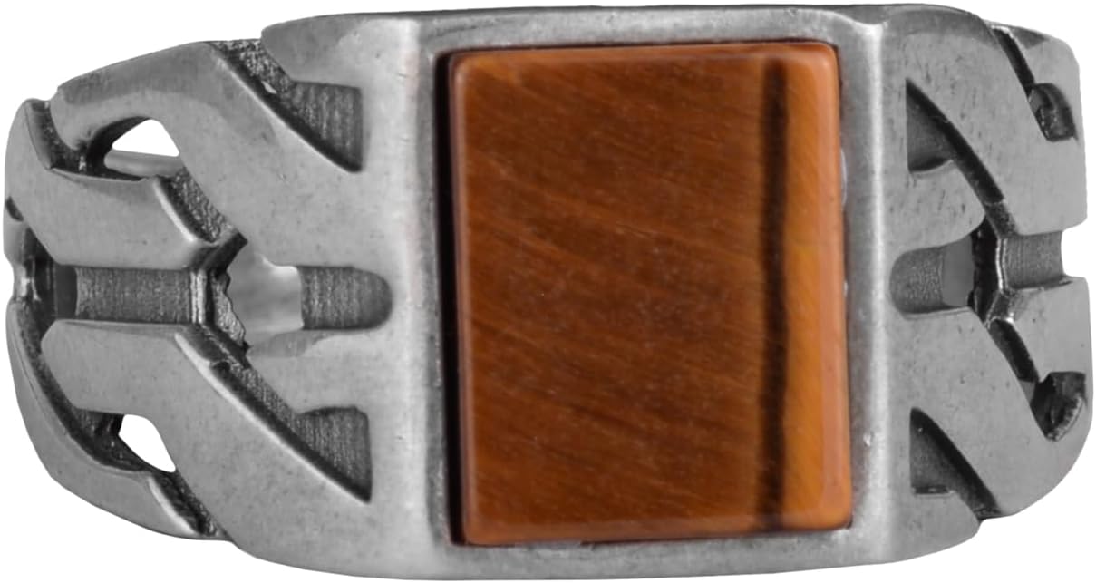 Sterling Gümüş Yunan Anahtar Yüzük - Doğal Olmayan Kaplan Göz Taşı ile El Yapımı Yüzük, Aslan Burcu için Cesaret ve Odaklanma