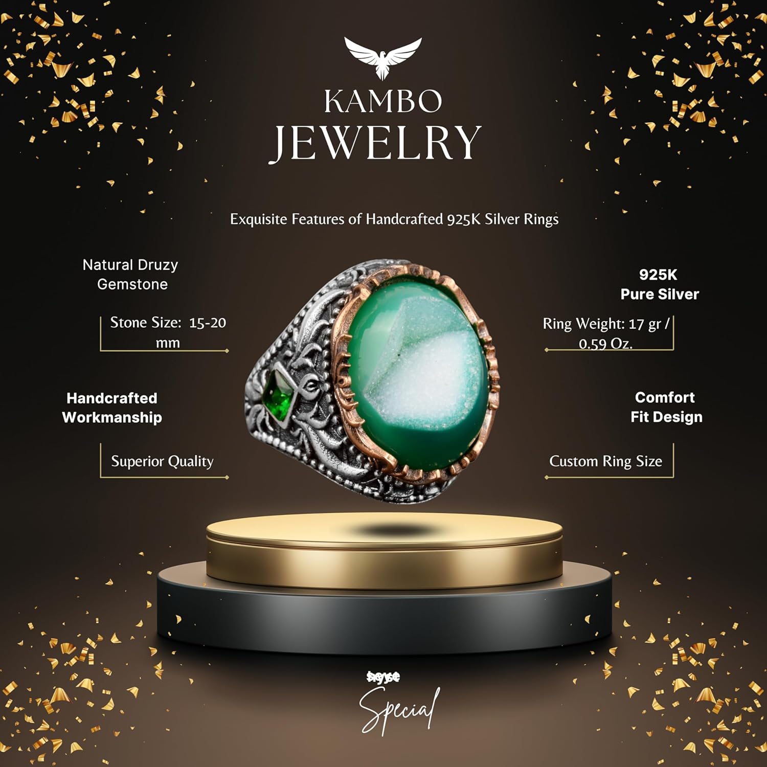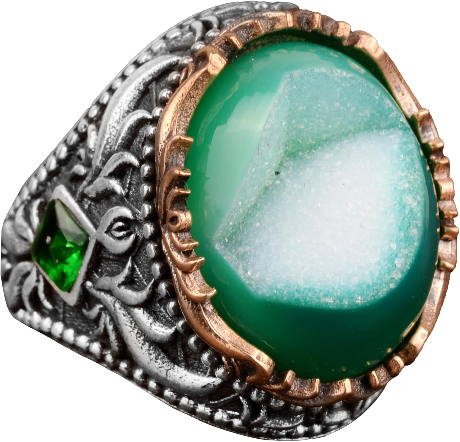 Vintage Erkek 925 Ayar Gümüş Yüzük, Doğal Druzy Kuvars Taş