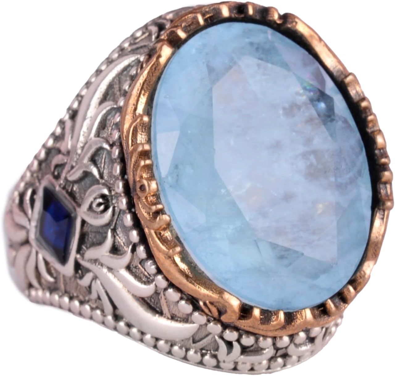 Yapay Taş Yüzük, 925 Ayar Gümüş Erkek Yüzük, Büyük Yüzük (Yapay Akuamarin Taşı)