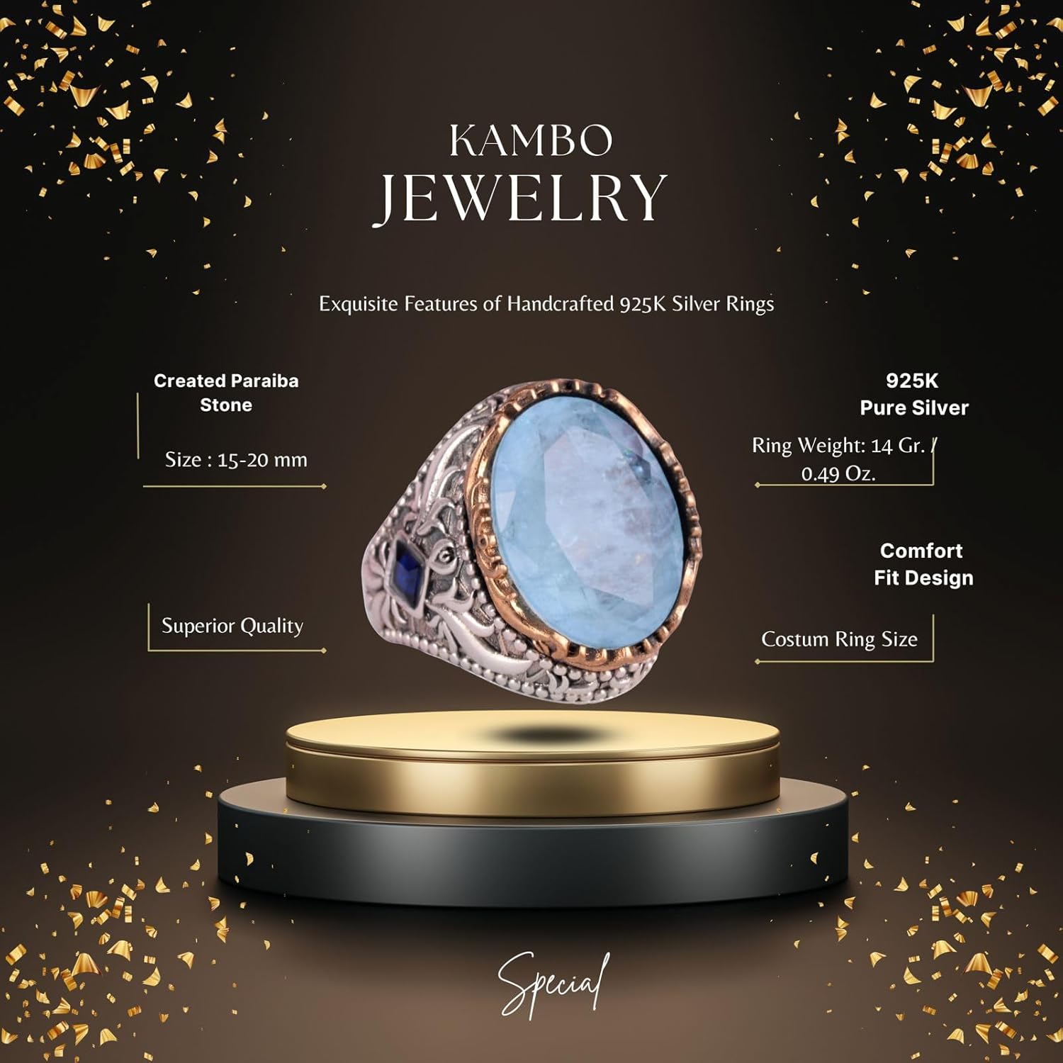 Yapay Taş Yüzük - Sultan Yüzüğü - 925 Ayar Gümüş Yüzük - El Yapımı Kral Yüzüğü (Yapay mistik topaz)