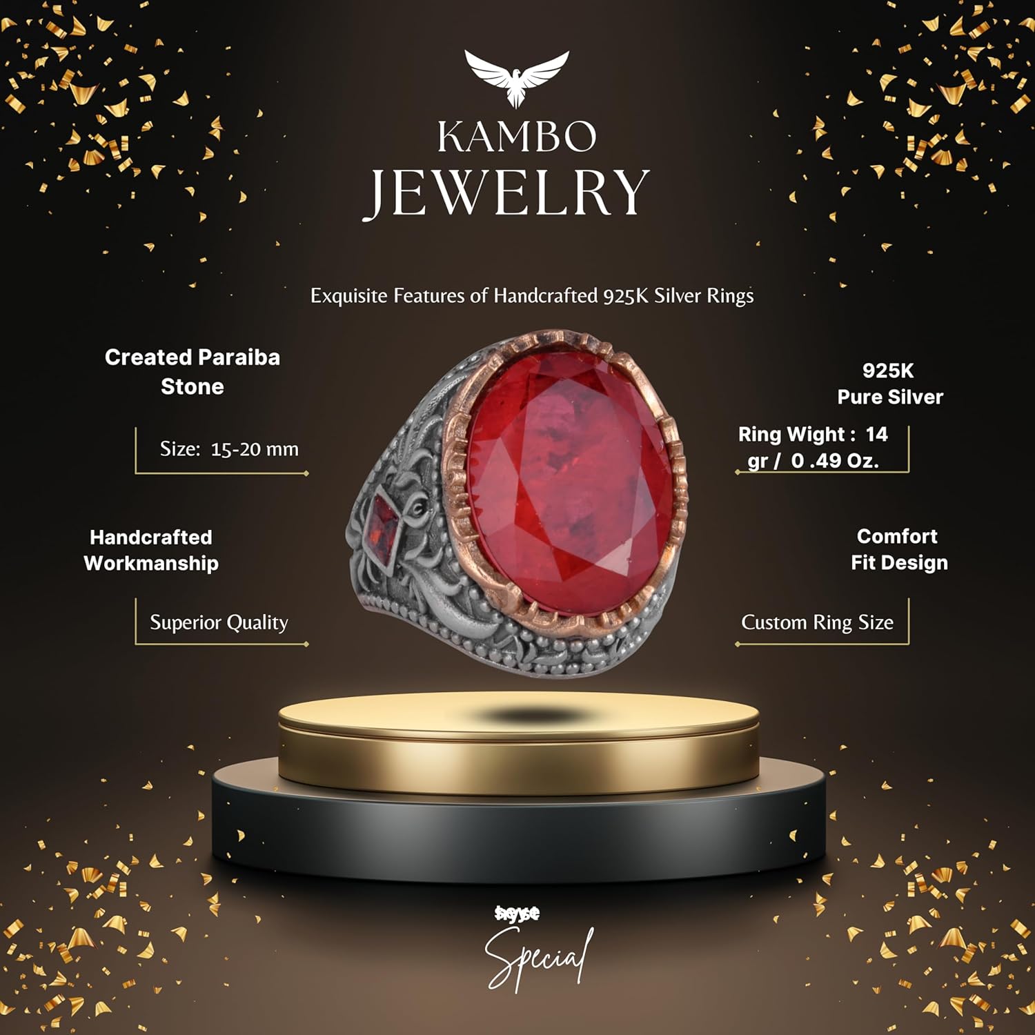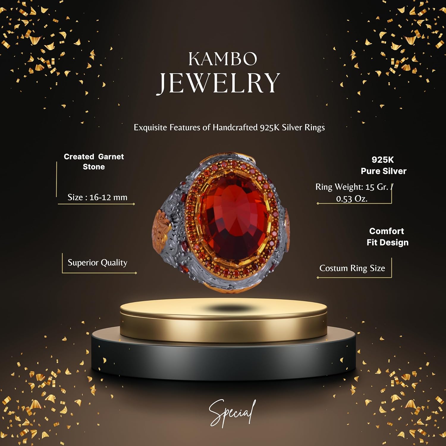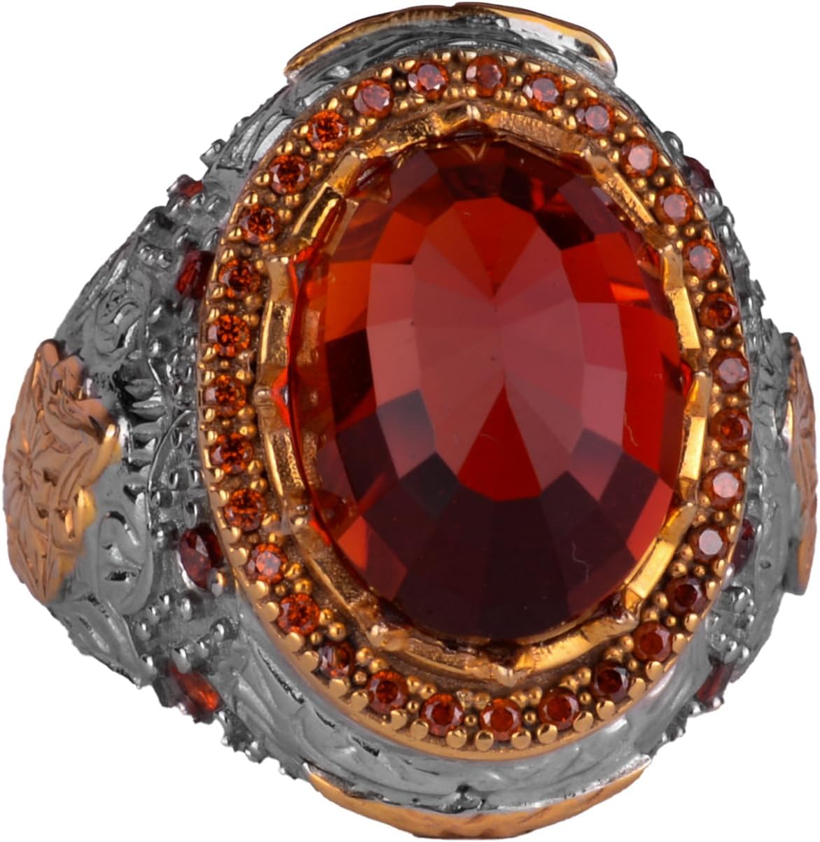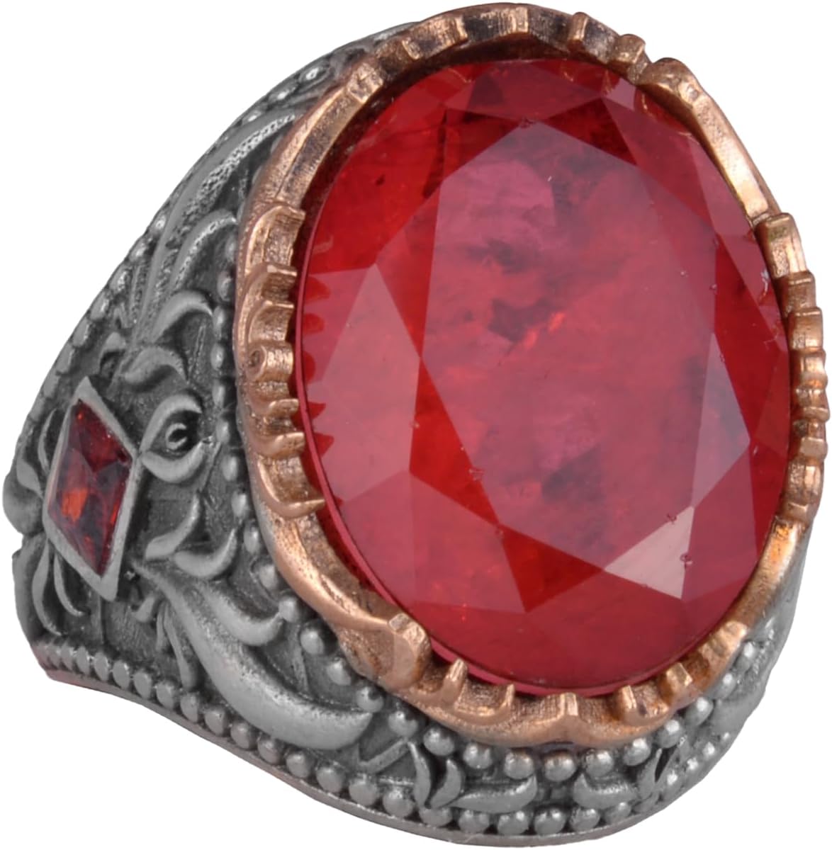Yapay Taş Yüzük - Sultan Yüzüğü - 925 Ayar Gümüş Yüzük Erkekler İçin - El Yapımı Kral Yüzüğü (Yapay Garnet)