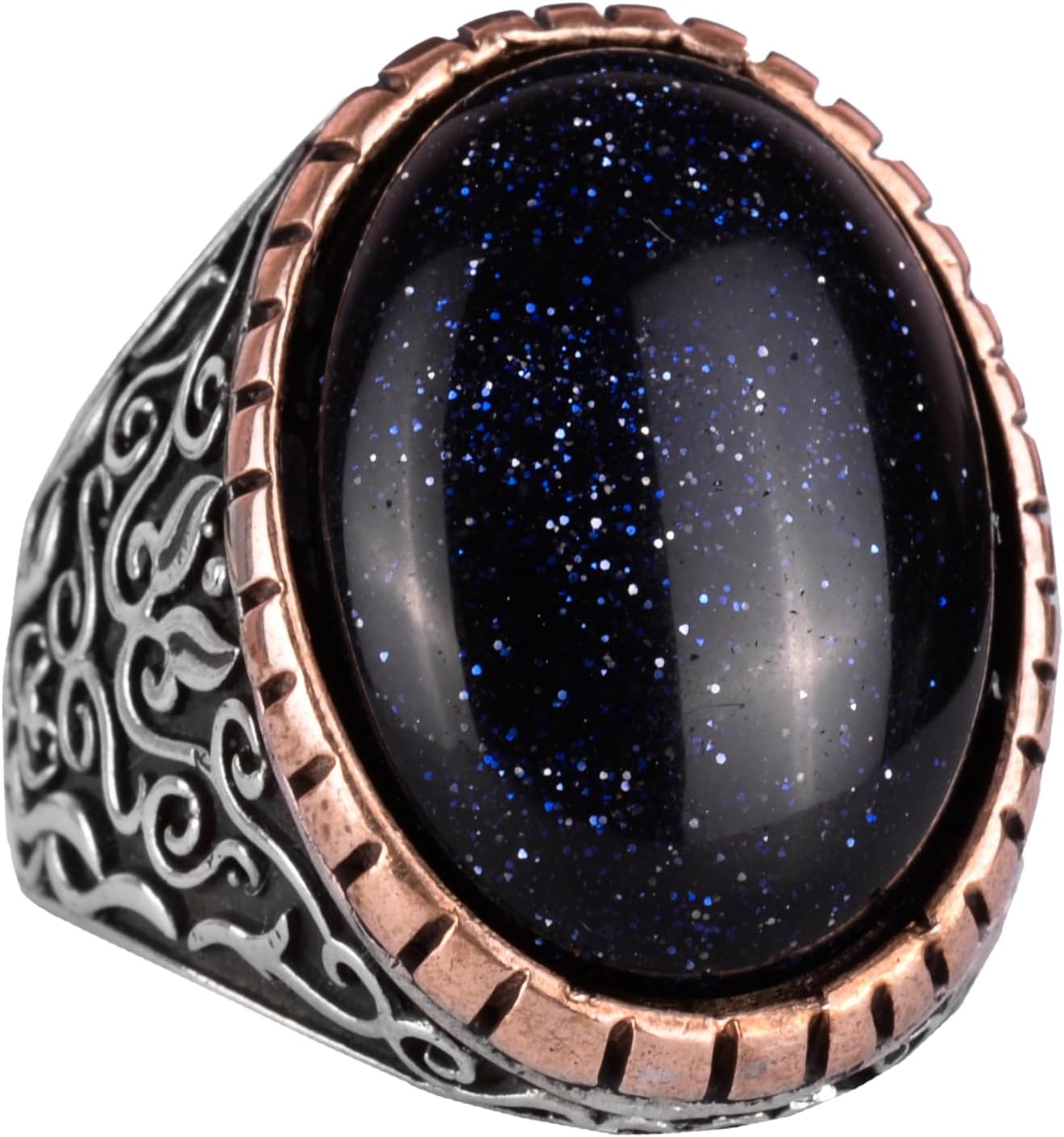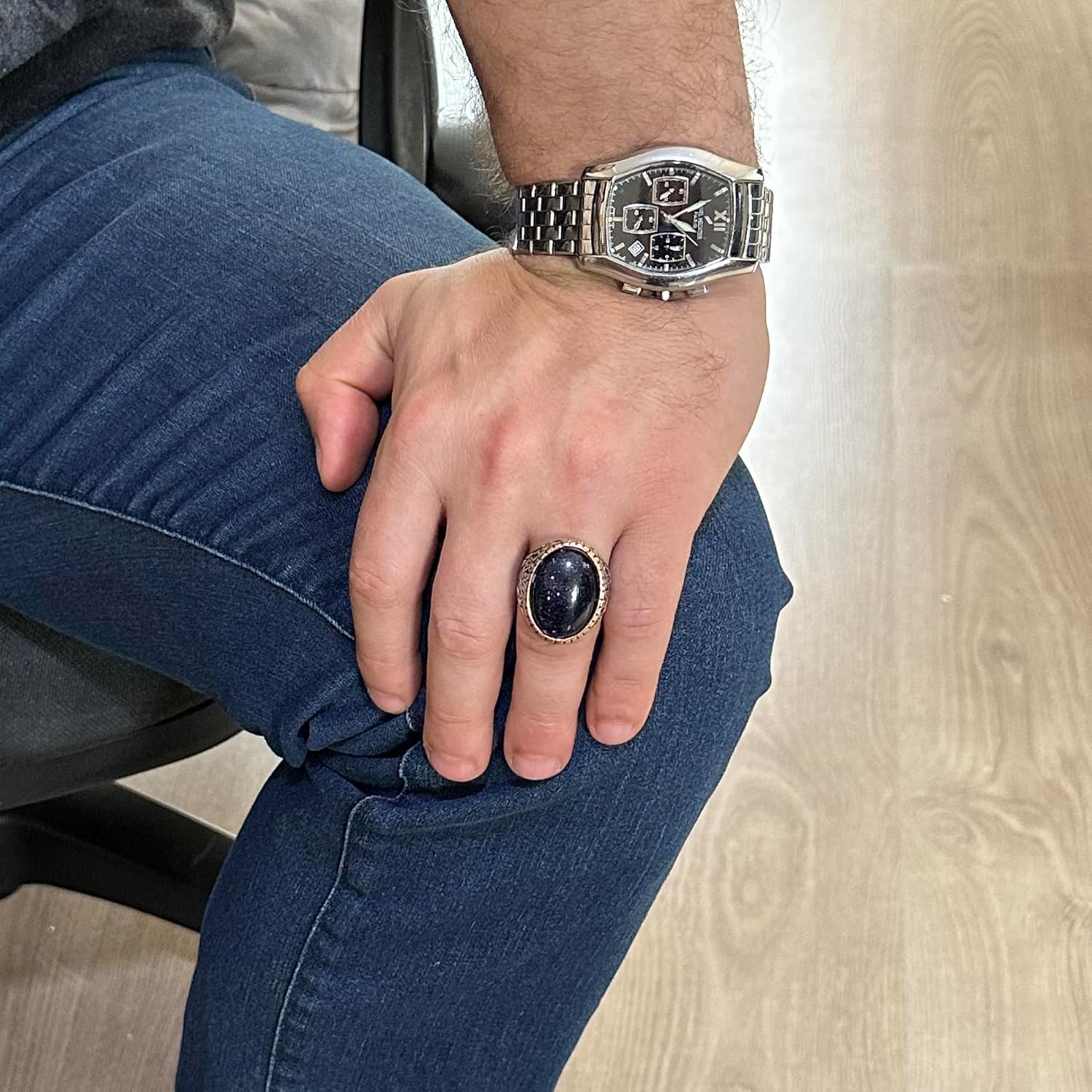 Yapay Taş Yüzük, 925 Ayar Gümüş Erkek Yüzüğü, Büyük Yüzük (Mavi Güneş Taşı Yapay Taş)
