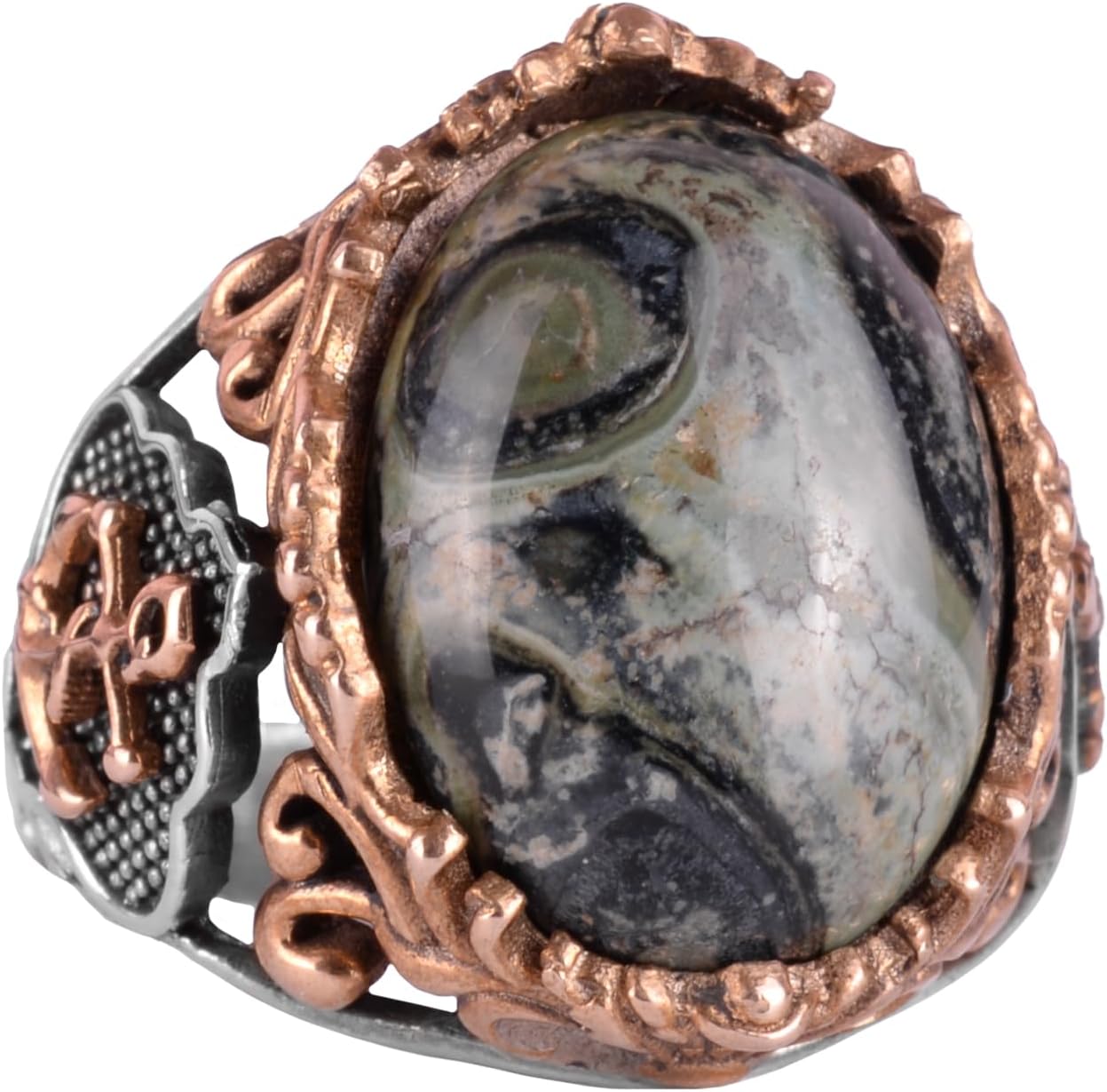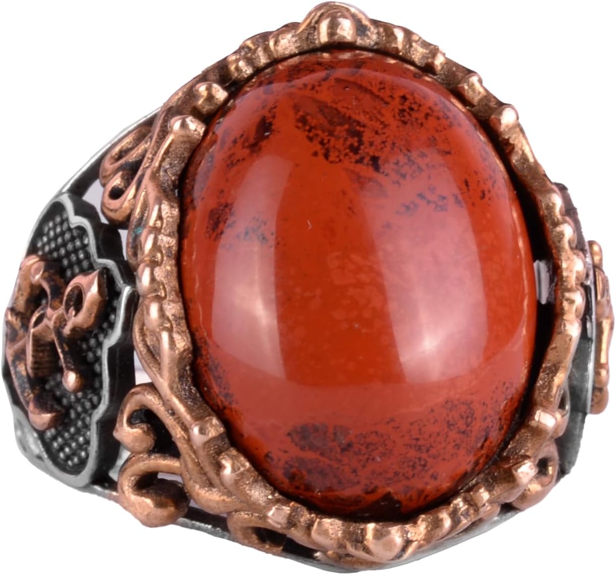 Yeşil Doğal Jasper Taşlı Yüzük Erkekler için, Gümüş Yeşil Jasper Yüzük, 925 Ayar Gümüş Erkek Yüzüğü, Büyük Yüzük