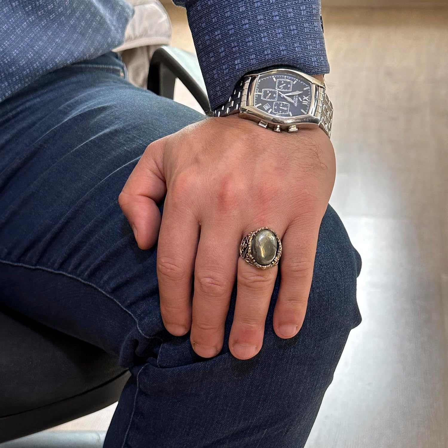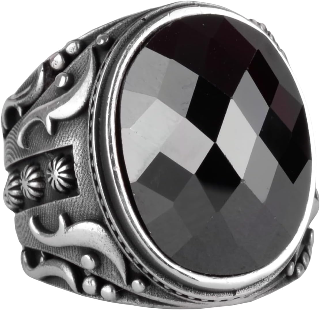 Yapay Taş Yüzük, 925 Ayar Gümüş Yüzük, Tasarım Gümüş Erkek Yüzüğü (Oniks Yapay Taş)