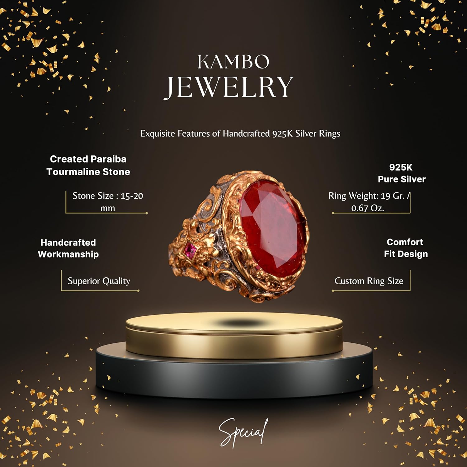 Yapılmış Paraiba Kırmızı Taş Yüzük - Rodaj Kaplama 925 Ayar Gümüş - El Yapımı Bant Yüzük