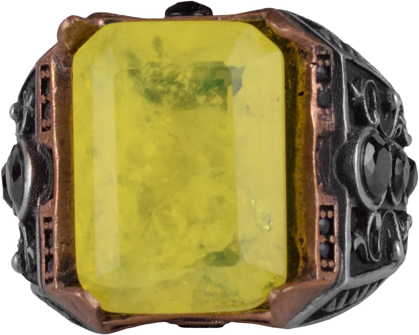 925 Ayar Gümüş Yüzük - Erkekler İçin Oluşturulmuş Taş Yüzük - El Yapımı Yüzük (Oluşturulmuş sarı paraiba)
