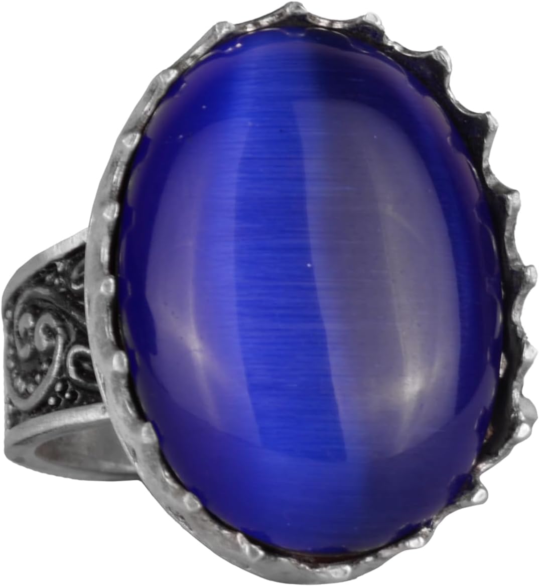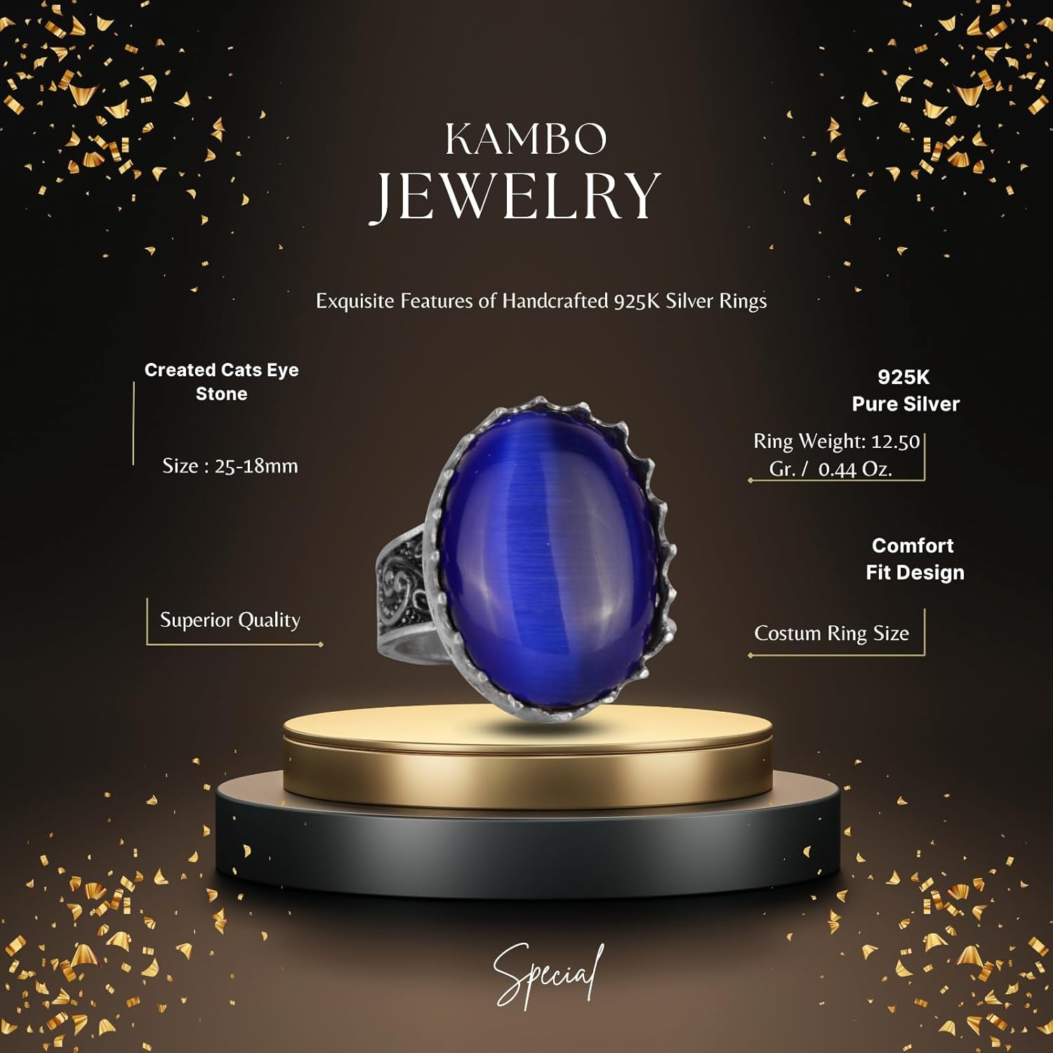 925 Ayar Gümüş Yüzük - Büyük Yüzük - Yapay Taşlı Gümüş Yüzük - El Yapımı Yüzük (Yapay Mavi Kedi Gözü)