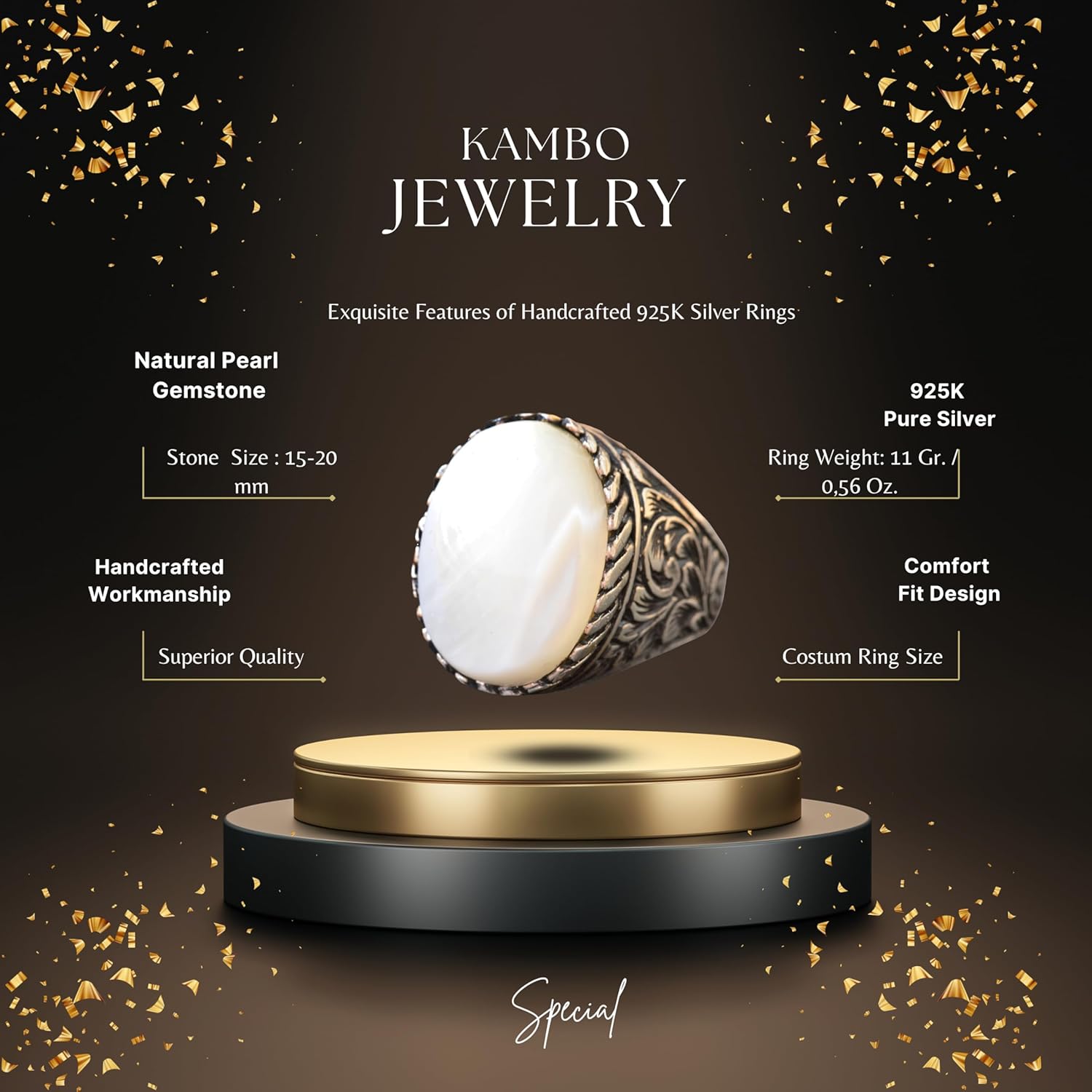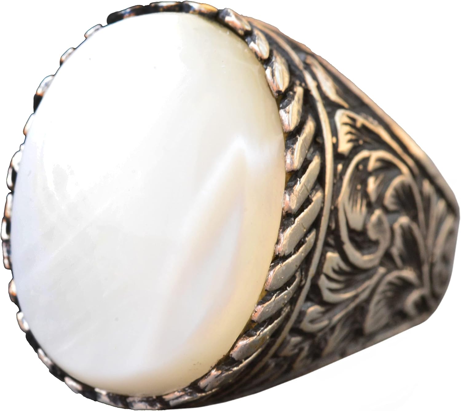 925 Ayar Gümüş Yüzük - Gerçek Doğal Sedef Taş Yüzük