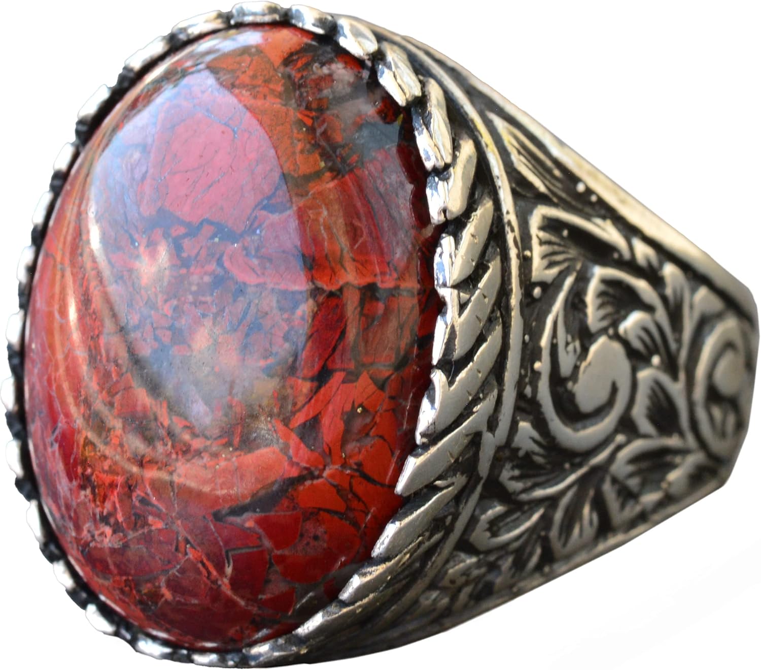 925 Ayar Gümüş Yüzük - Gerçek Doğal Taş Yüzük - (Kan Taşı)