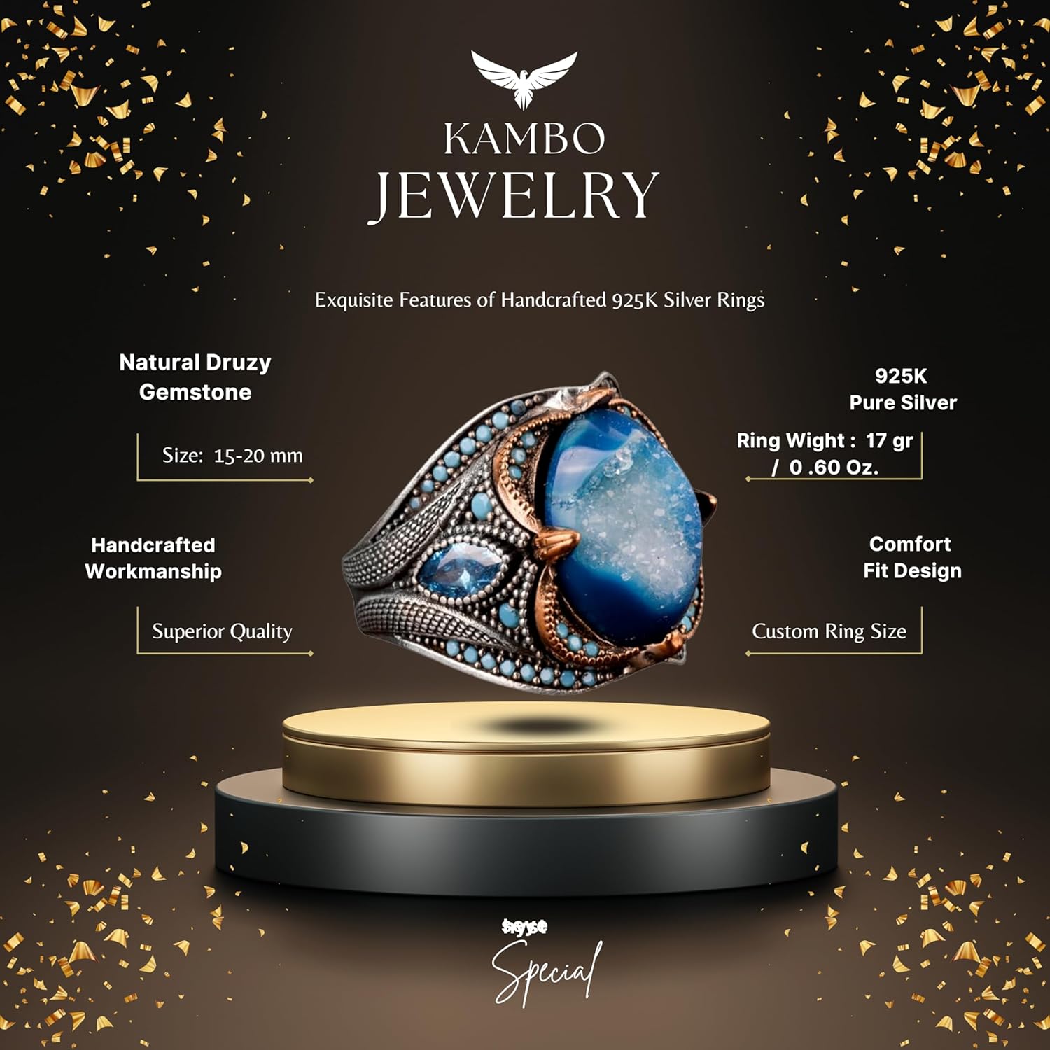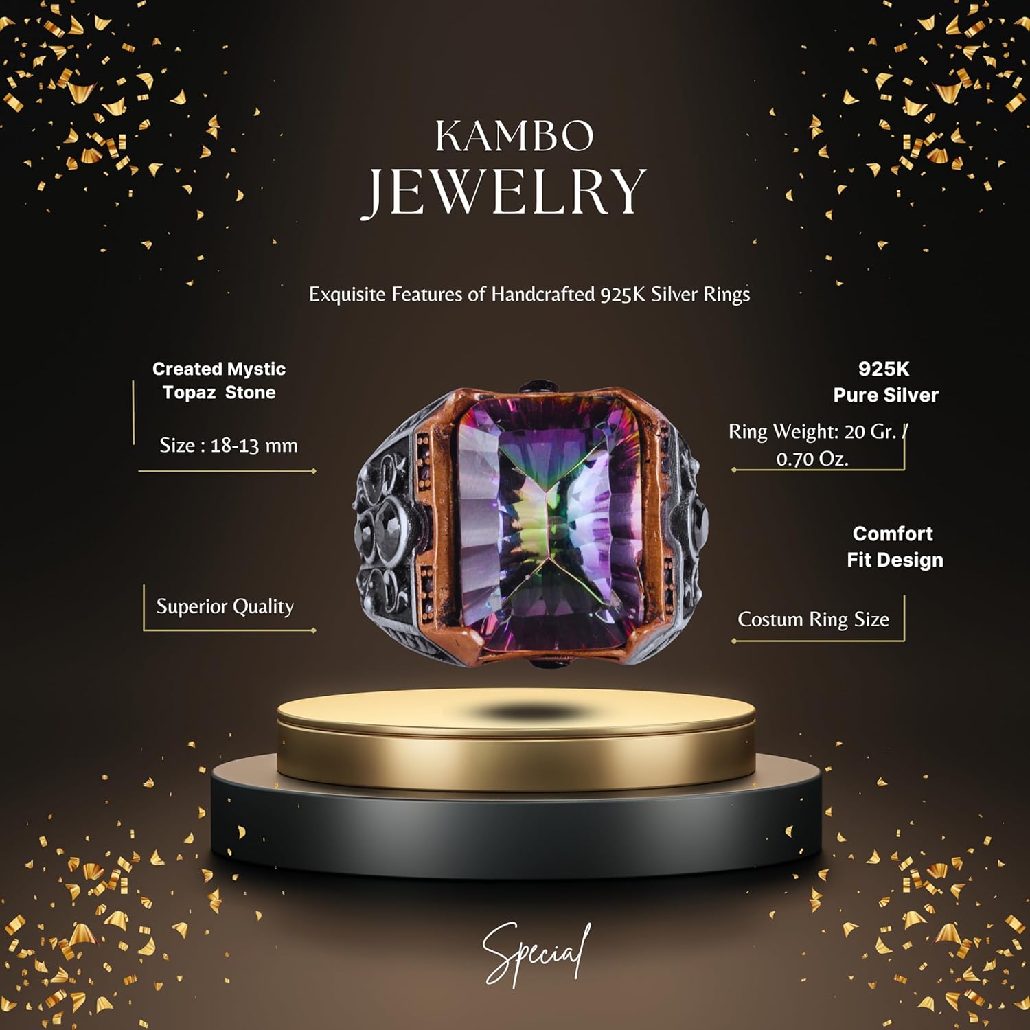 925 Ayar Gümüş Yüzük - Erkekler İçin Oluşturulmuş Taş Yüzük - El Yapımı Yüzük (Oluşturulmuş mistik topaz)