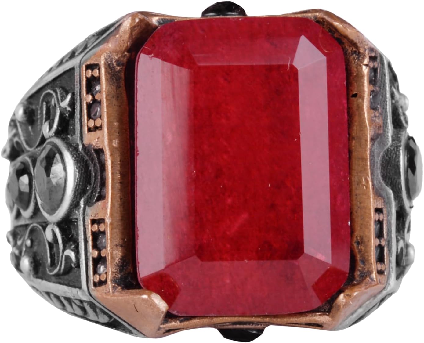 925 Ayar Gümüş Yüzük - Doğal Ruby Taşlı Erkek Yüzük
