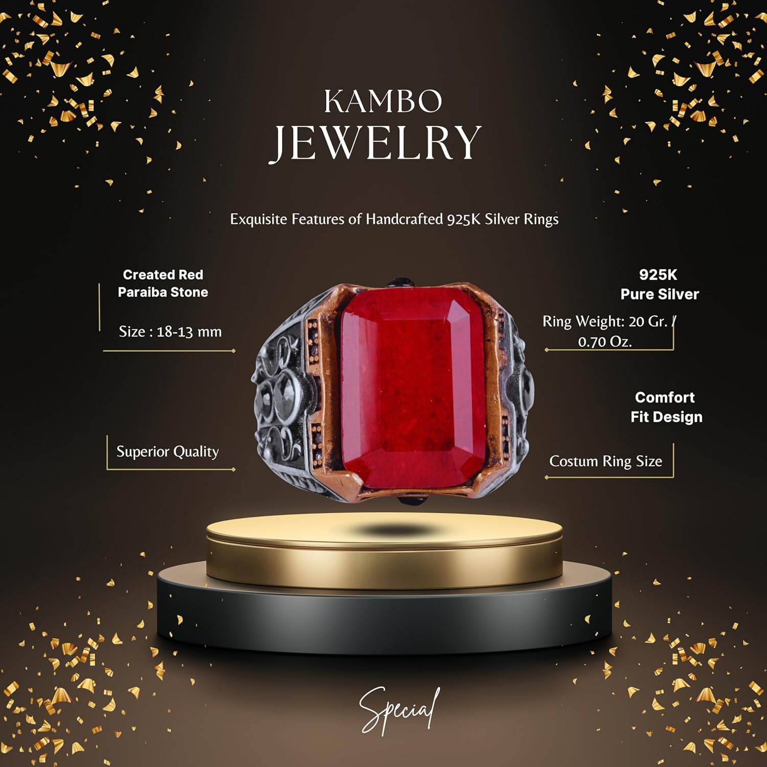 925 Ayar Gümüş Yüzük - Erkekler İçin Oluşturulmuş Taş Yüzük - El Yapımı Yüzük (Oluşturulmuş kırmızı paraiba)
