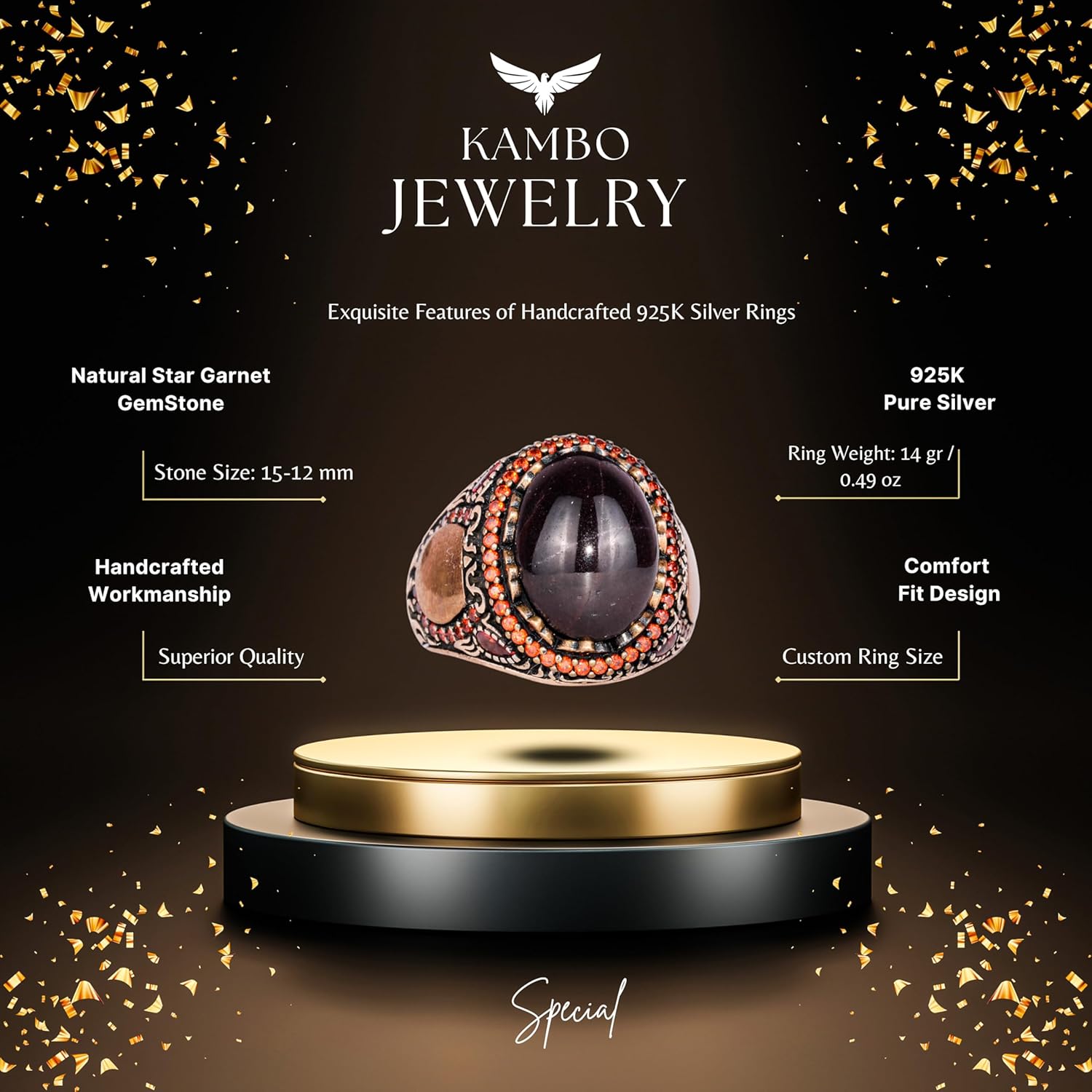 925 Ayar Gümüş Yüzük - El Yapımı Doğal Garnet Taşlı Erkek Yüzüğü